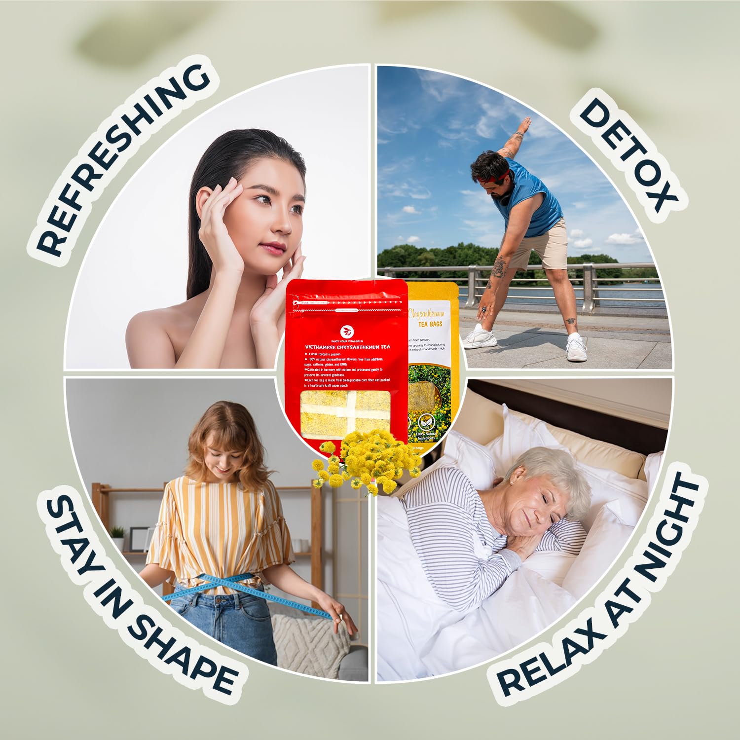 - 🇻🇳 [NEW TEA SAMPLERS] Our Vietnamese Chrysanthemum flower tea has 2 types: 10 and 55 tea bags, suitable for new tea lovers. It is slightly bitter, with a mild floral scent blending into your mouth. Can re-steep the tea twice.