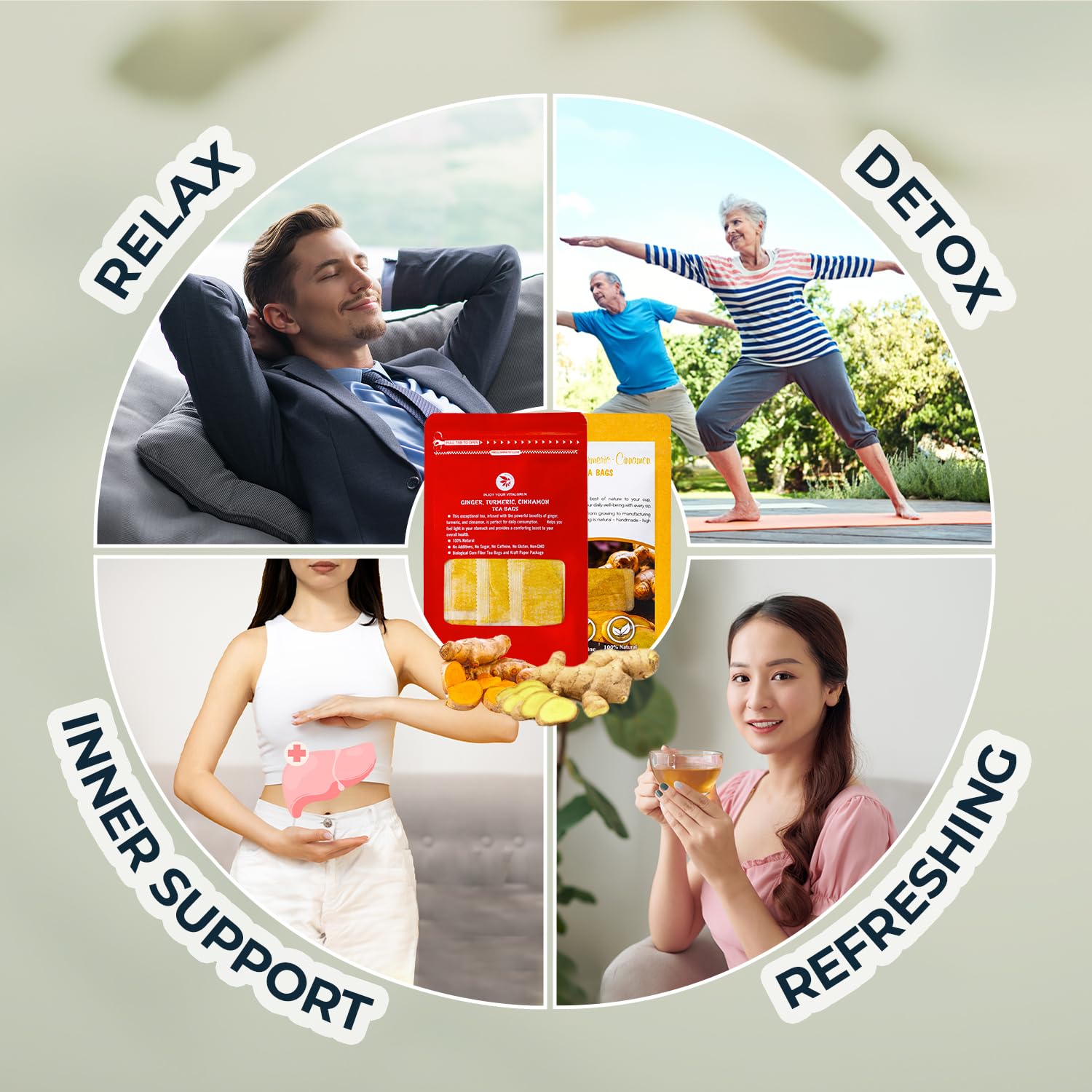 - 😌 [𝐏𝐞𝐫𝐟𝐞𝐜𝐭 𝐟𝐨𝐫 𝐑𝐞𝐥𝐚𝐱𝐚𝐭𝐢𝐨𝐧] Enjoy a cup of our turmeric ginger cinnamon tea after a long day to unwind. The calming properties of this herbal blend help you relax, making it a perfect evening tea.