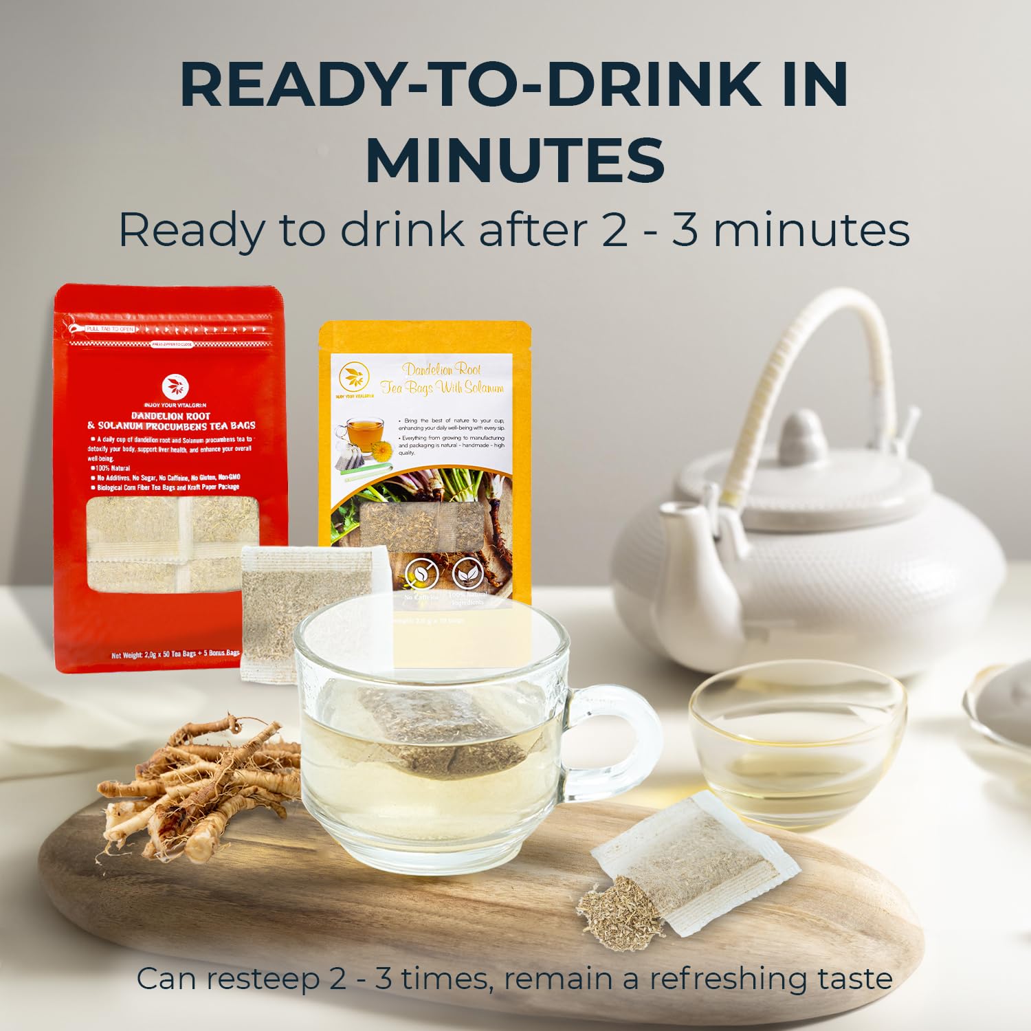 - ā [ššš§ ššš¬šššš© šš”š ššš šš°š¢šš] Each dandelion root tea bag is easy to brew; just steep in hot water for 2-3 minutes for a quick and refreshing tea break. Enjoy it with sweeteners or over ice for a cooling treat.