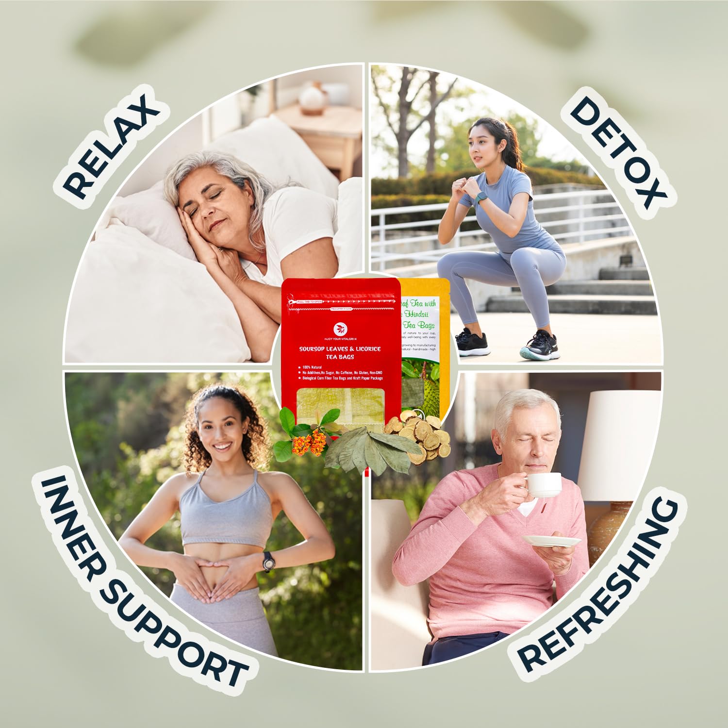 - šæ [Graviola Soursop Leaves Combine] Graviola soursop leaf tea has a refreshing taste with a slight sweetness aftertaste. The flavor harmonizes well with the gentle nutrients of Celastrus Hindsii and licorice, helping you relax after a long day.