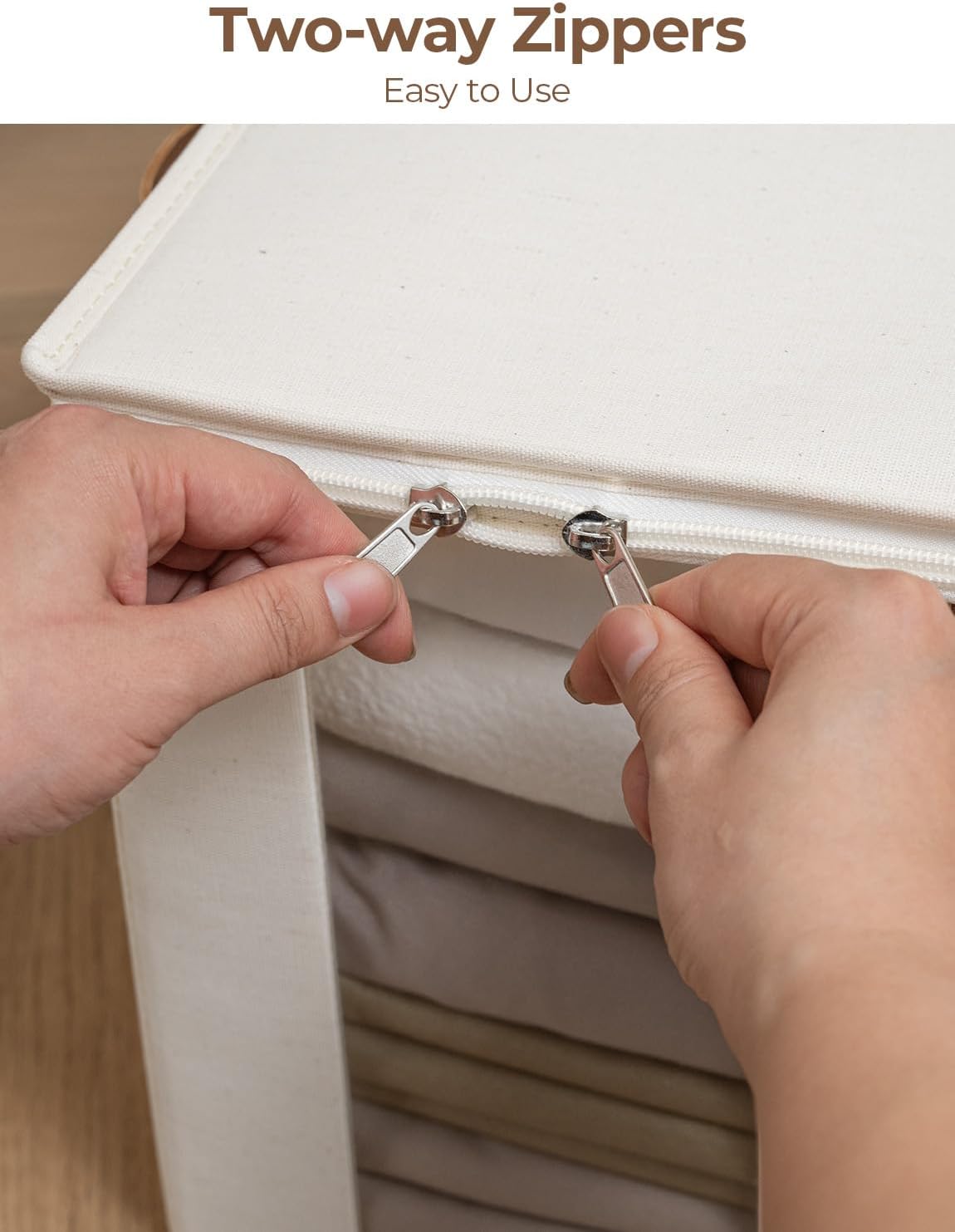 StorageWorks 2-Pack Bed Sheet Organizers and Storage, Foldable Bedsheet Holder for Linen Closet, Bedding Container with Handle, Beige, 15" D x 12¾"W x 10" H