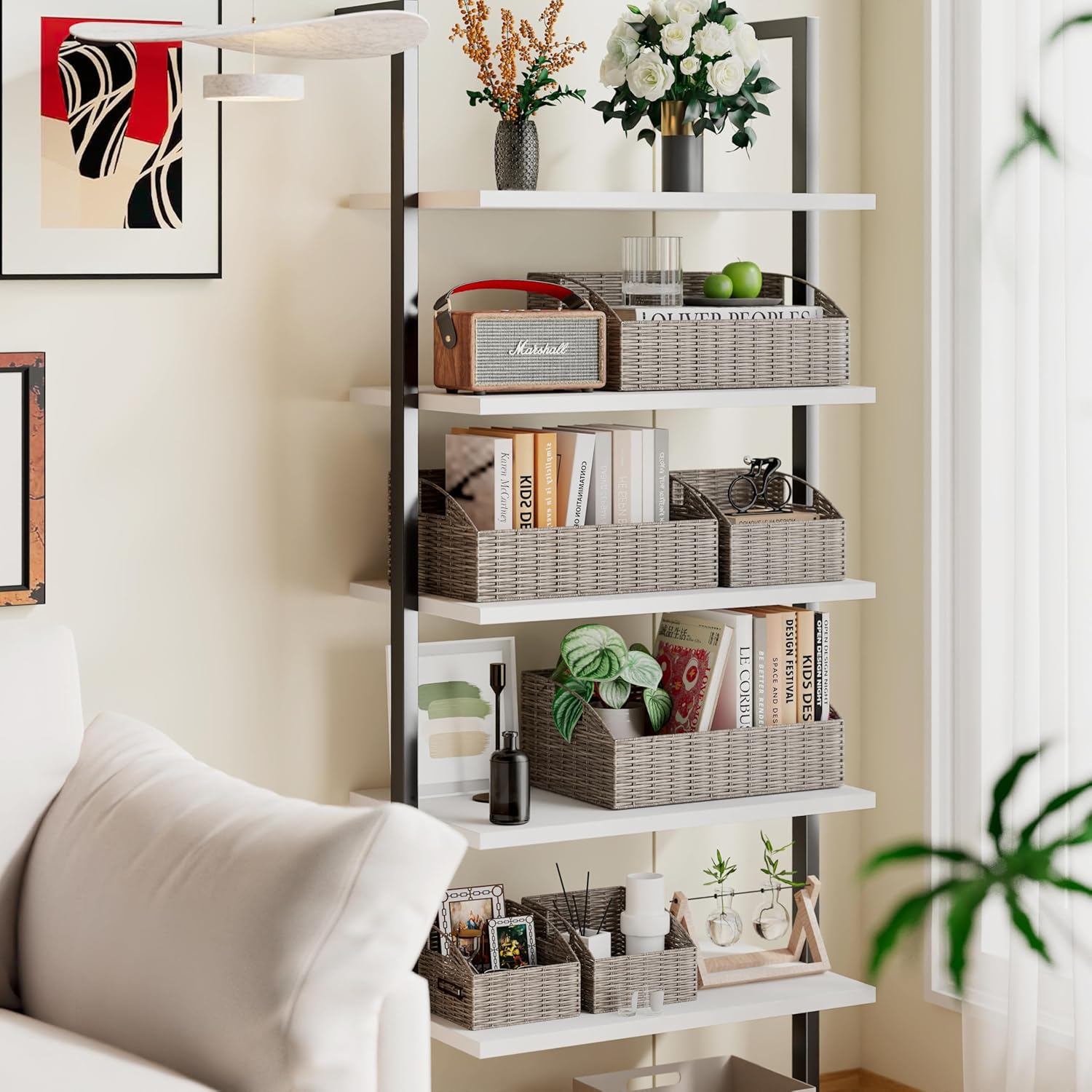 - STURDY AND DURABLE: The durable wicker storage bins are hand-woven by seasoned artisans over a rugged iron frame. The wicker storage baskets can be used for a long time without deformation. Simple and easy to clean the pantry baskets, all you need to do is wipe it with a damp cloth.
