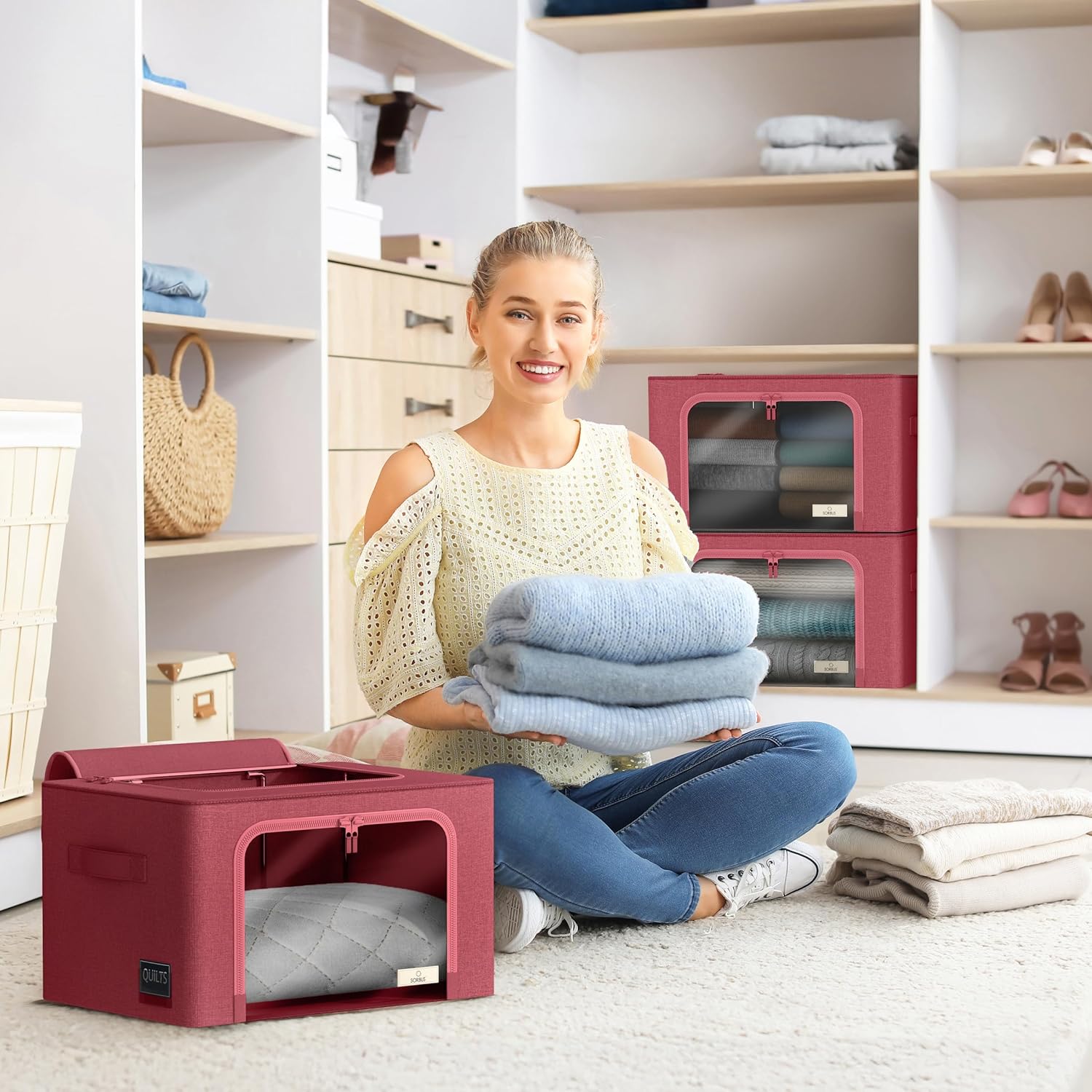 - CLOSET STORAGE ORGANIZER SET (6 Pack): Store and protect clothing and household items with these structured storage containers.