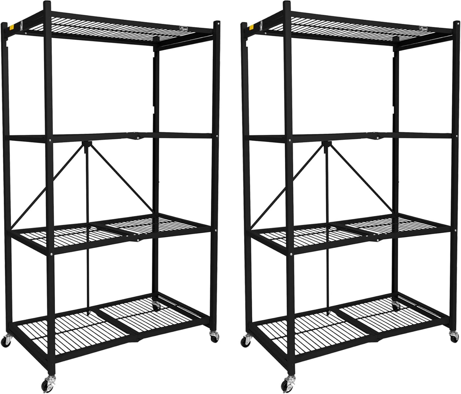 Origami 2 Pack 4 Tier Foldable Metal Garage Storage Shelf Rack, Wheels & Powder Coated Steel, Black