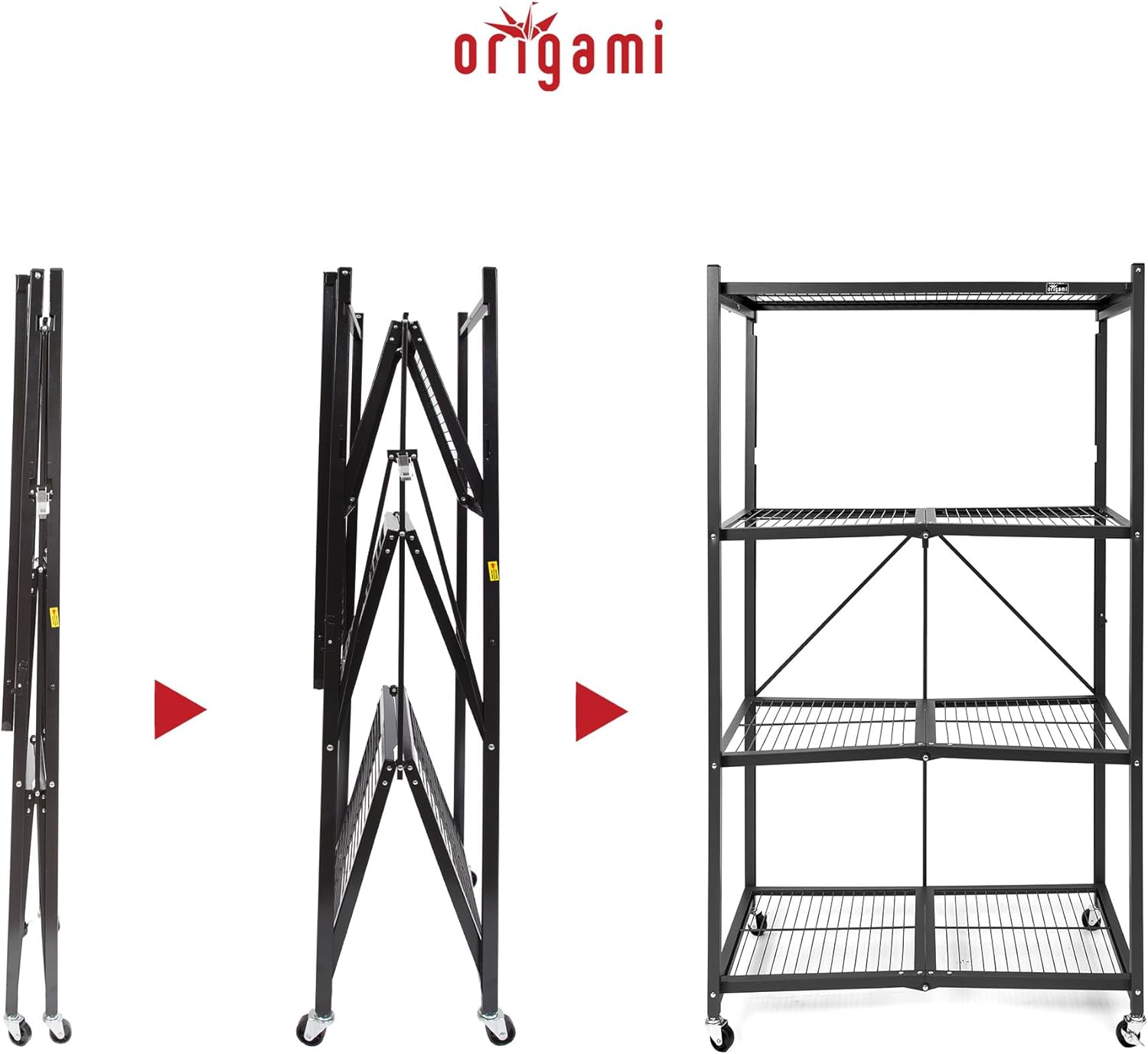 - Thoughtfully Designed 4-Tiered Storage: Innovative Origami foldable shelving racks made of commercial grade powder-coated steel provides a heavy duty multi-functional solution perfect for all your storage needs