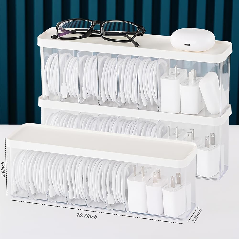 Charger Cable Cord Storage Organizer Box - 3 Pack With Lid - Easy Storage Without Cable Ties