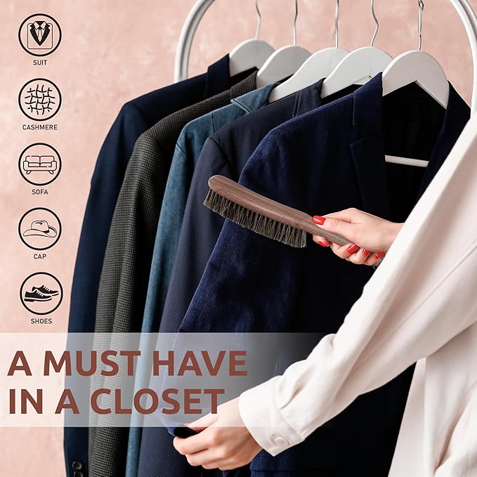 Lint Brush for Clothes with 100% Soft Horse Hair Bristle, Large Walnut Wood Handle, Lint Remover for Hat, Pet Hair, Suits, Cashmere, Wool, Velvet, Suede, Shoe