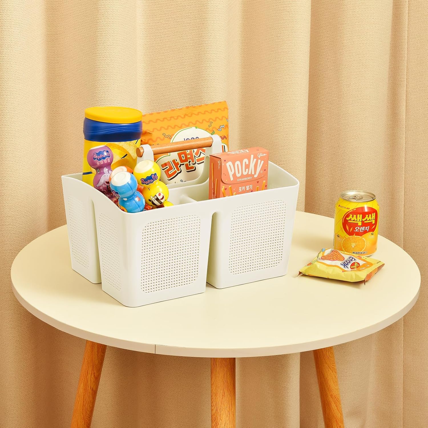 ALINK Portable Shower Caddy Basket with Compartments, Plastic Divided Cleaning Caddy Organizer Storage Tote with Handle for Bathroom, College, Dorm Room Essentials - Beige