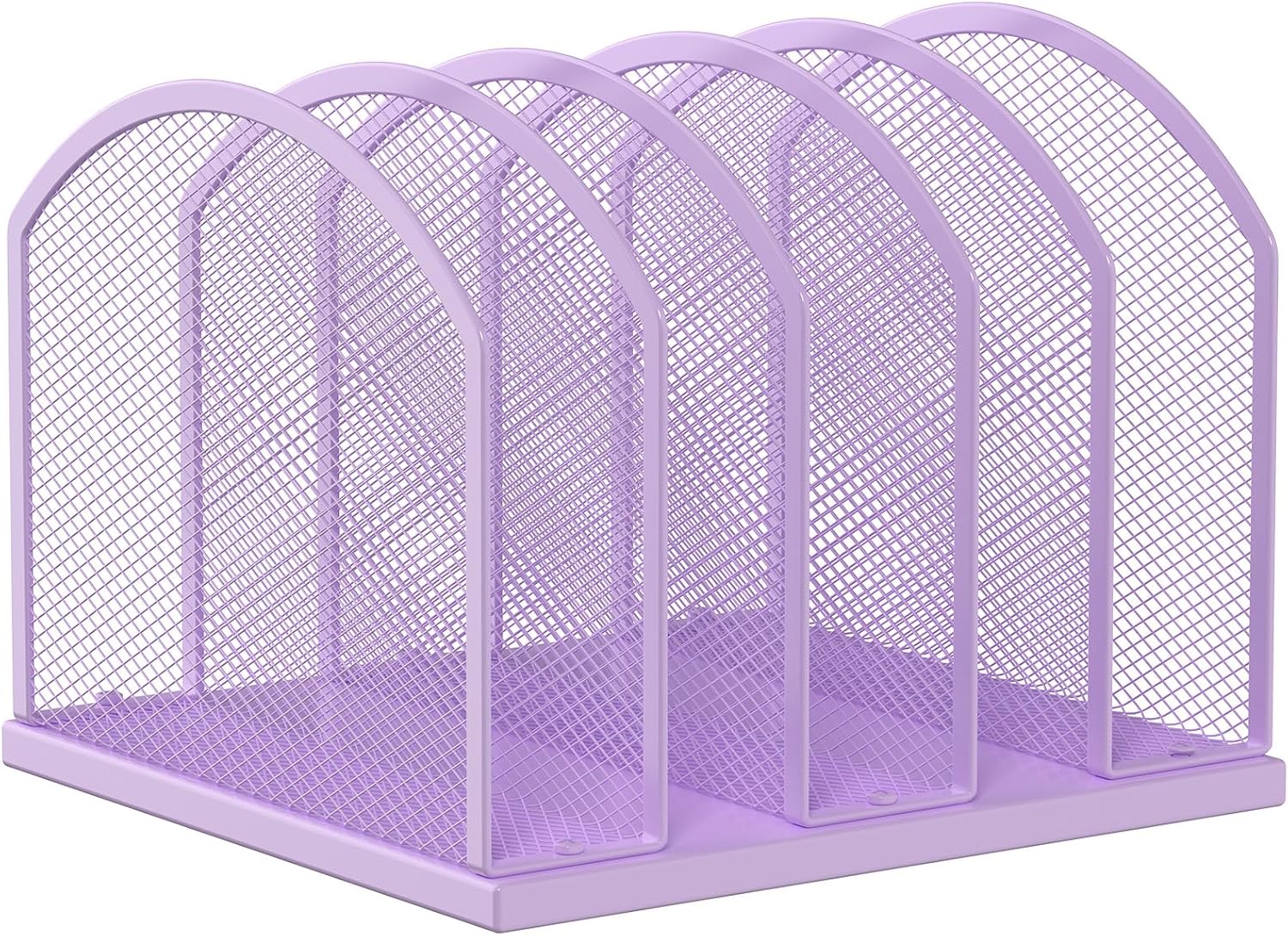 5-Section Vertical Desktop Organizer, 5-Section Mesh File Folder Stand Sorter for Office Home Classroom Organization (1, Purple)