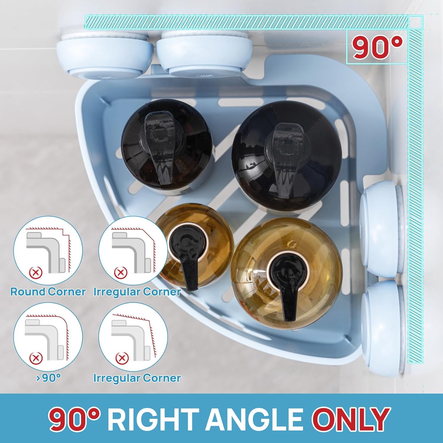 LEVERLOC Corner Shower Caddy Suction Cup, Shower Caddy Basket Powerful Suction Bathroom, Waterproof & Rustproof Organizer for Bathroom Storage, No-Drilling Removable (Blue)