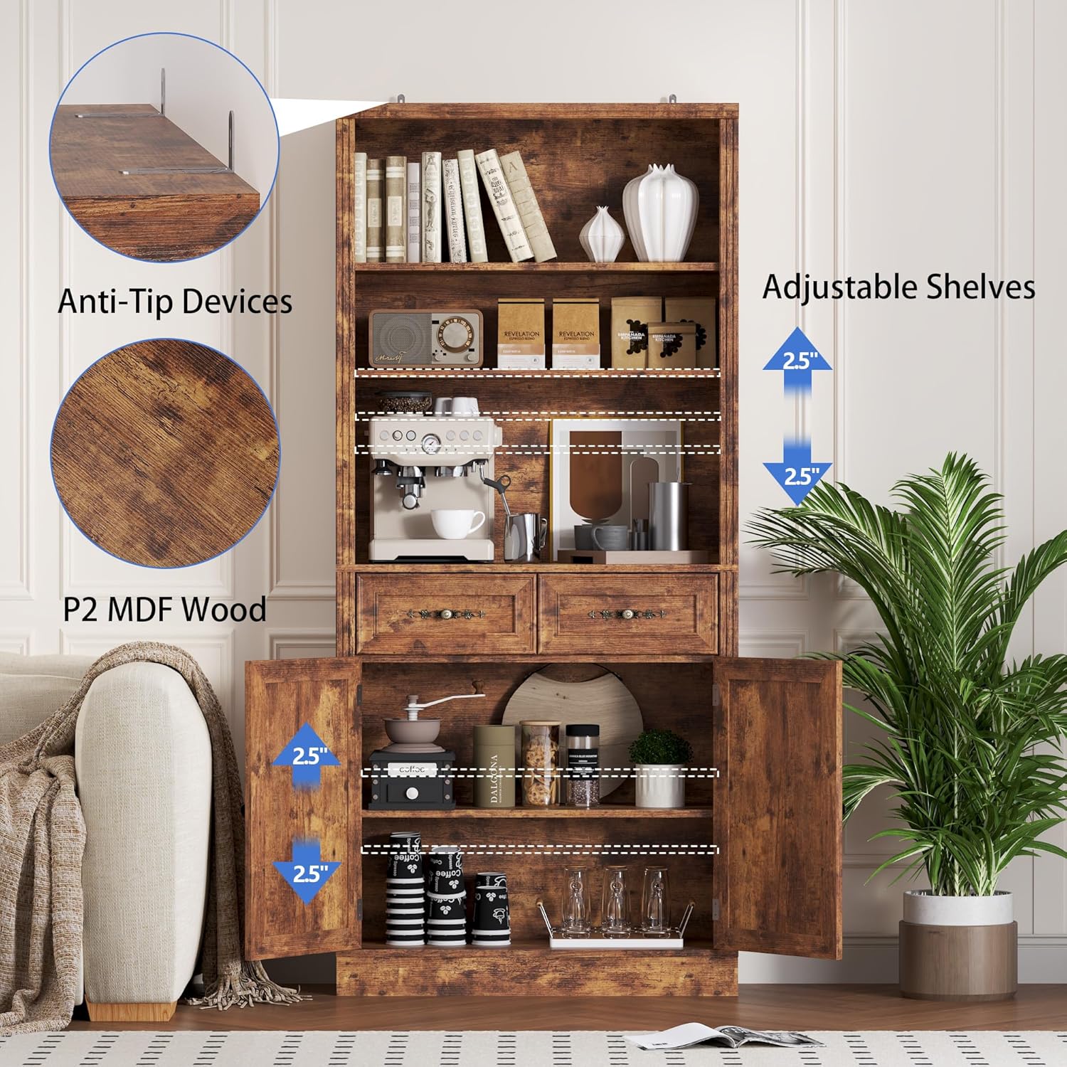 - Multi-Functional Storage Solution – BORNOON 71.4" tall, 31.5" wide bookcase features open shelves, two drawers, and a bottom cabinet, providing both display space and concealed storage for books, office supplies, and decor.
