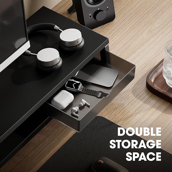 - 【Spacious & Organized Storage】: Dual monitor riser is 42.5"L X9.2 "W X 5.4" H. This computer stand is big enough to support two monitors, 2-tier desktop organizer and two semi-transparent frosted acrylic drawers to keep your workspace organized, The 1.9" bottom space securely stores keyboards, mice, or office supplies