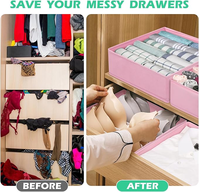 - 【KEEP YOUR DRAWERS TIDY】: These fabric drawer organizers are practical, not only do your items stay organized, but you can also find items easily and quickly. You no longer have to rummage through messy drawers or deal with tangled accessories. These organizers simplify your daily work and increase your overall productivity by providing a neat storage solution.