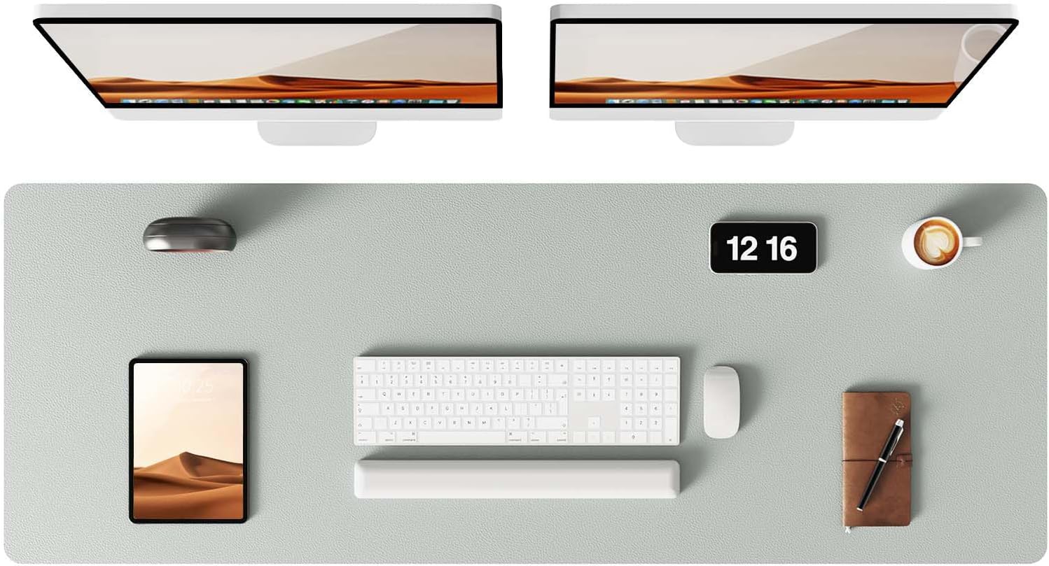 YSAGi Leather Desk Pad Protector, Office Desk Mat, Large Mouse Pad, Non-Slip PU Leather Desk Blotter, Laptop Desk Pad, Waterproof Desk Writing Pad for Office and Home (Grayish Green, 47" x 17")