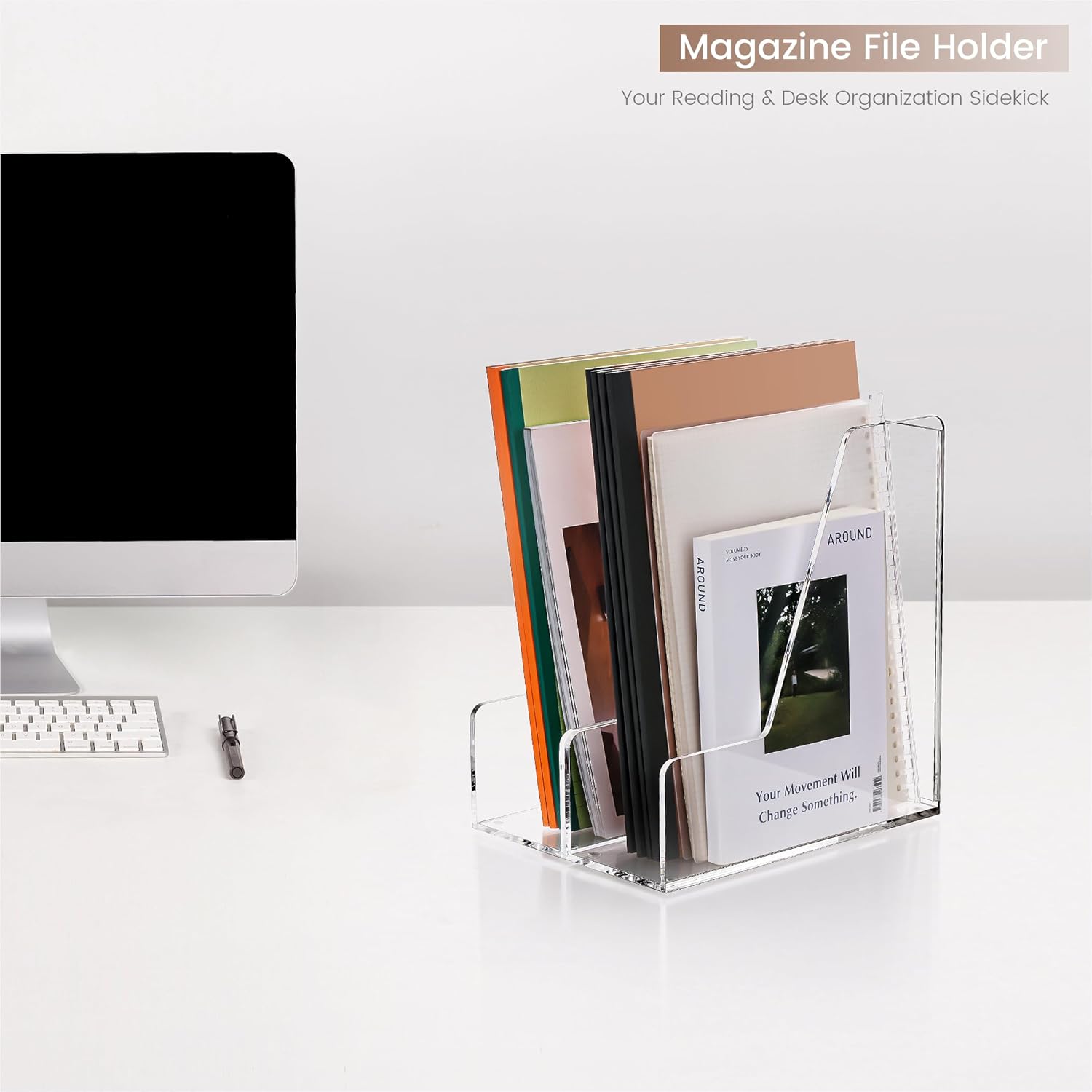 YUXUN Acrylic Magazine File Holder,Clear Desk Organizer File Holder Stand for File/Magazine/Binders/Notebook/Envelopes,Multi-purpose Coloring Comic Book Storage for Home/Office/Classroom Organization