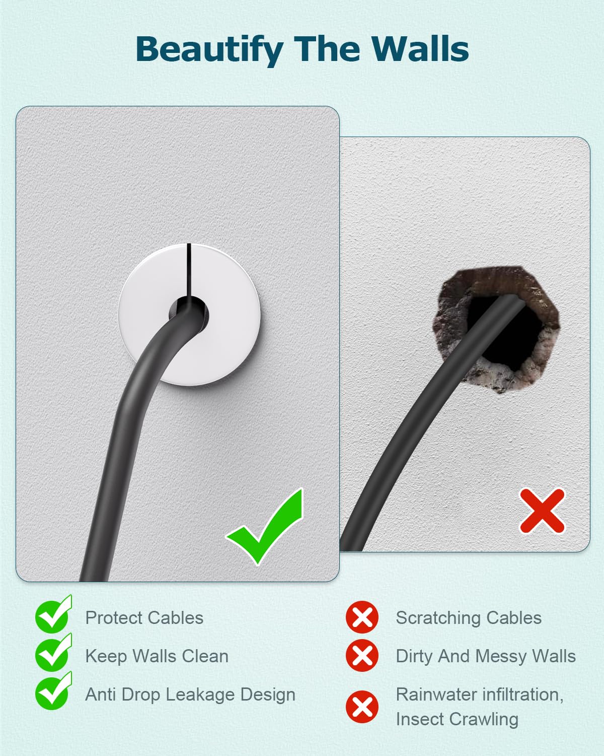 - This wall grommets for starlink cable is easy to use. First, drill a hole with a diameter of 19mm/0.74inch in the wall, insert the cable core into the hole on the inner and outer walls, then remove the cable routing kit to cover your Starlink cable, align with the wall hole, and complete the installation without unplugging the plug.