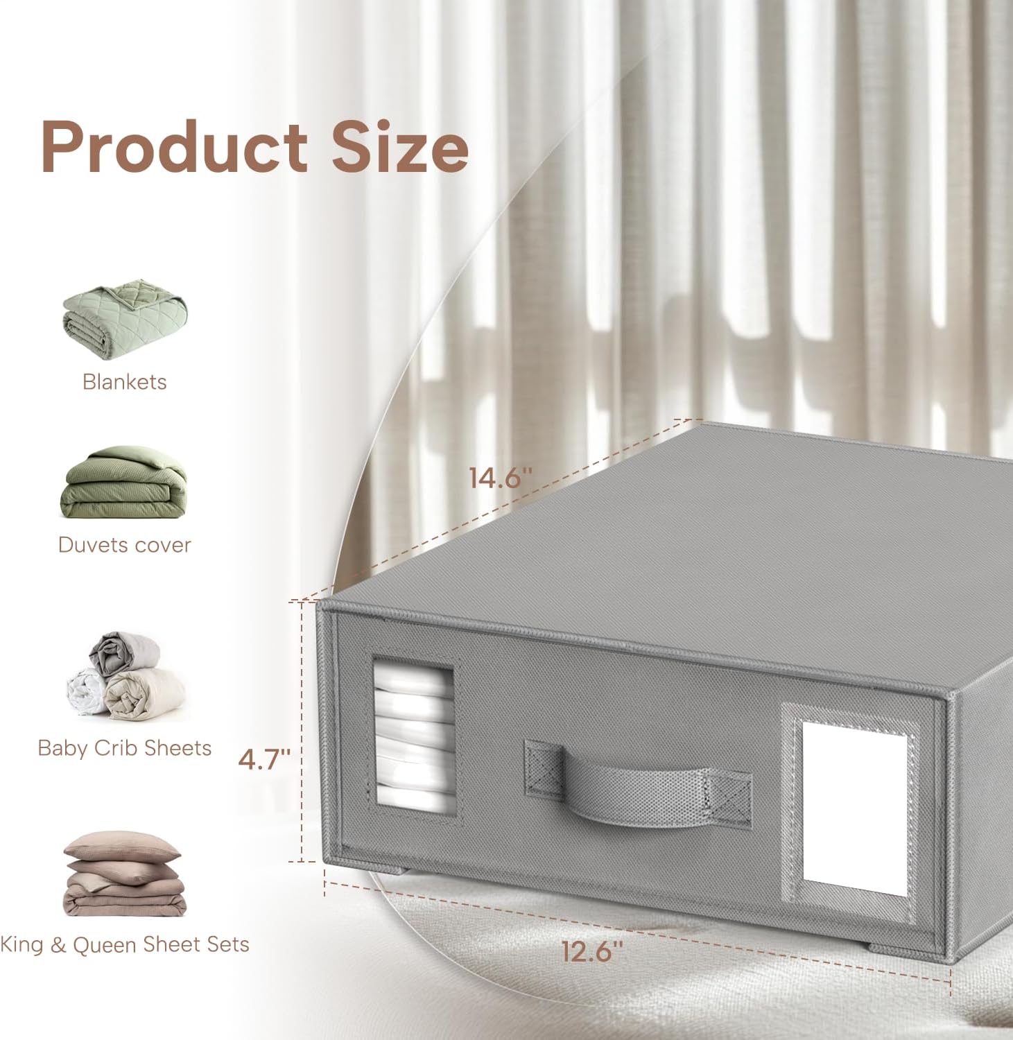 - Ideal Size: Our box measures 14.6 inches (L) x 12.6 inches (W) x 4.7 inches (H)—ideal for storing one queen/king sheet set or a duvet cover. The stackable design fits perfectly in closets, under beds, or on shelves