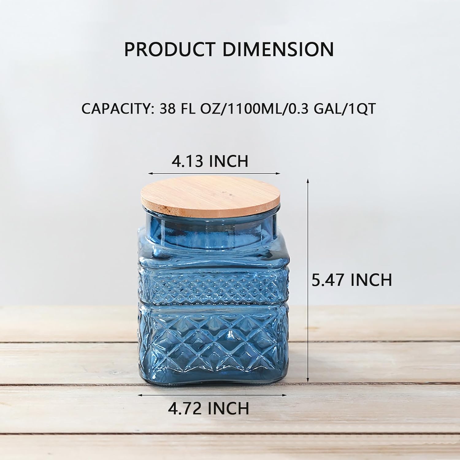 - 【Large Capacity Glass Jar】Two specifications are available, Large: 60 Fl oz/ 1.5Qt/ 1800ml/ 0.5Gal of liquid; Medium: 38 Fl oz/ 1Qt/ 1100ml/ 0.3Gal;holds 600 grams of coffee beans,Each glass jar comes with an airtight bamboo lid and rubber gasket to ensure a leak-proof and airtight seal, keep your food dry and fresh for a long time.