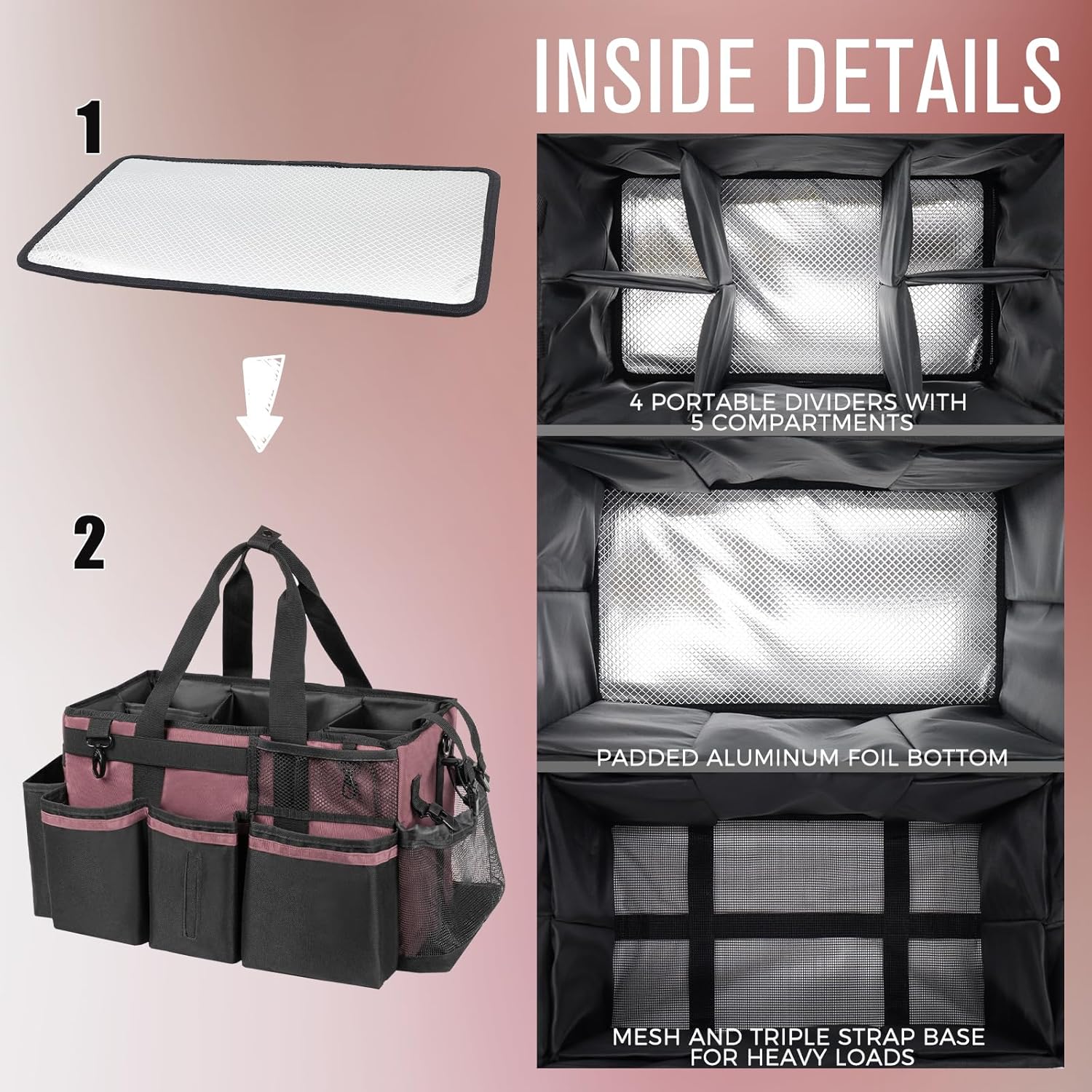 Wearable Cleaning Caddy, Cleaning Caddy Supplies Organizer with Handle & Shoulder Straps for Housekeepers, Under Sink & Car Cleaning Tool Organizers Bag with 4 Foldable Divider (LotusPink)