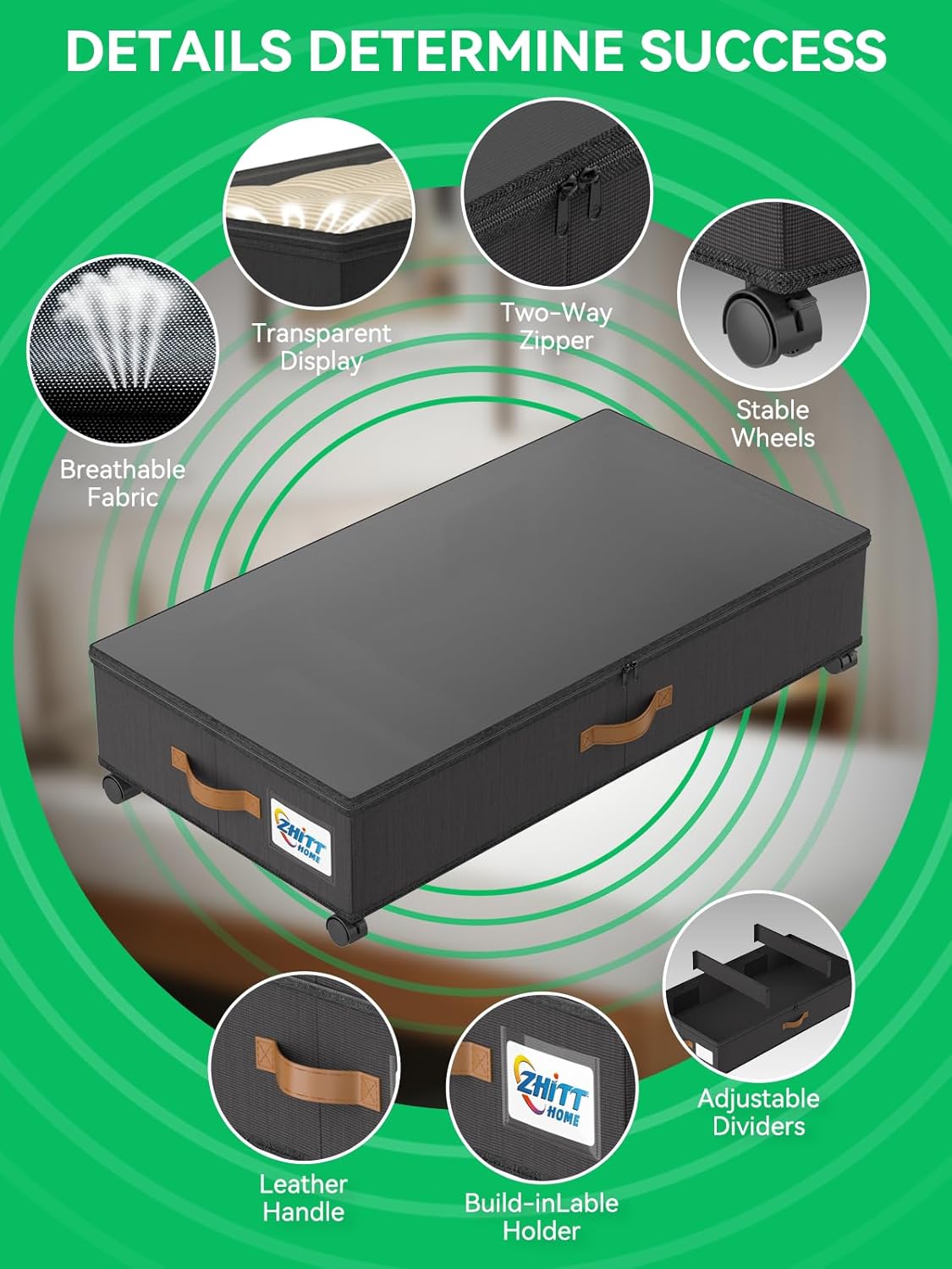 - 【Easy to Install】: ZHITTHOME rolling storage bin can be installed in 5 minutes with user-friendly instructions. Saved you time and effort. This versatile storage solution isn't limited to just underbed use, it can also be placed under cribs, couches, sofas and furniture. A must-have bedroom essential for you!