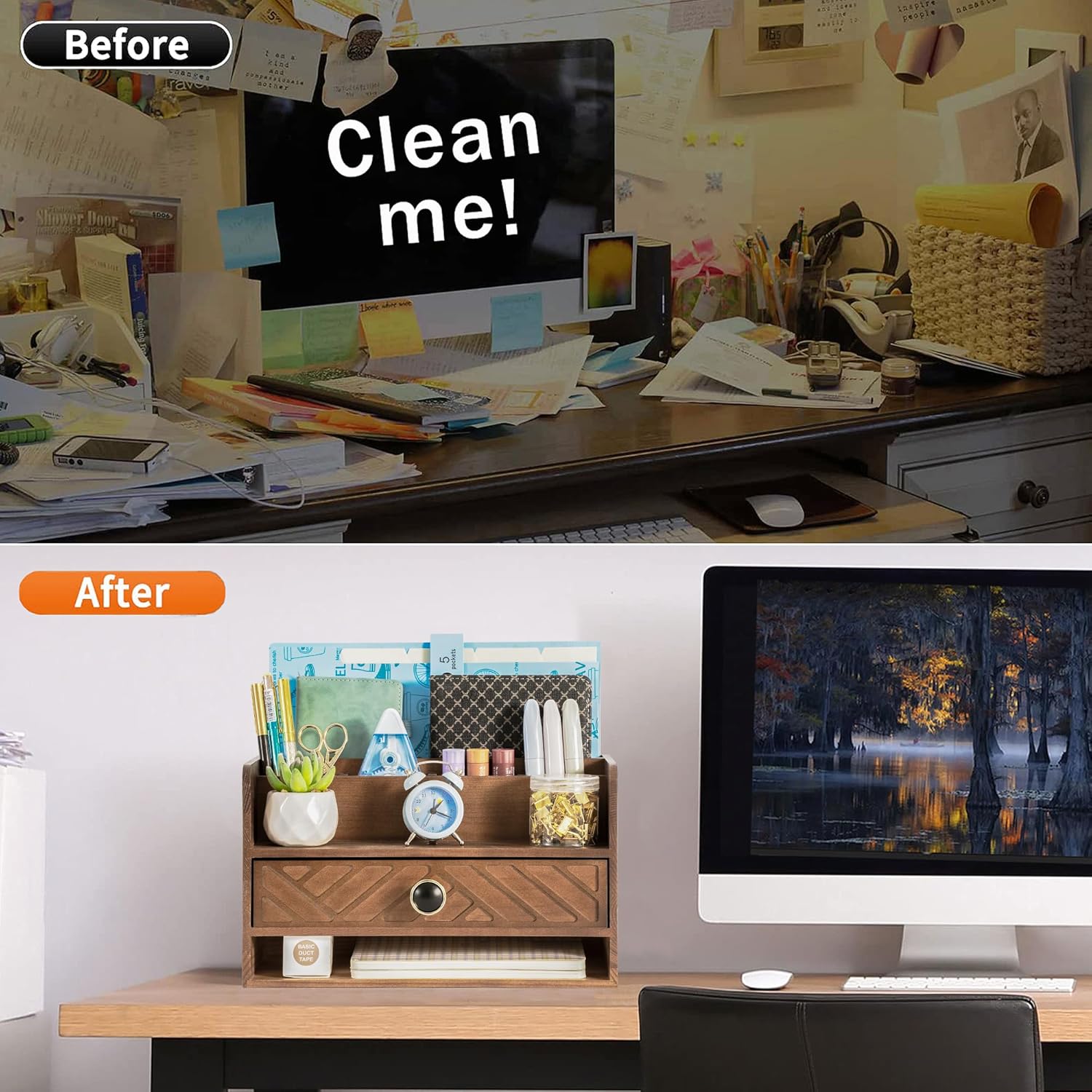 - EXQUISITE APPEARANCE: This brown desk organizer has a modern and elegant appearance design, which can help you and your family eliminate the troubles of daily clutter. It can help you create a designated workspace that is both functional and aesthetically pleasing