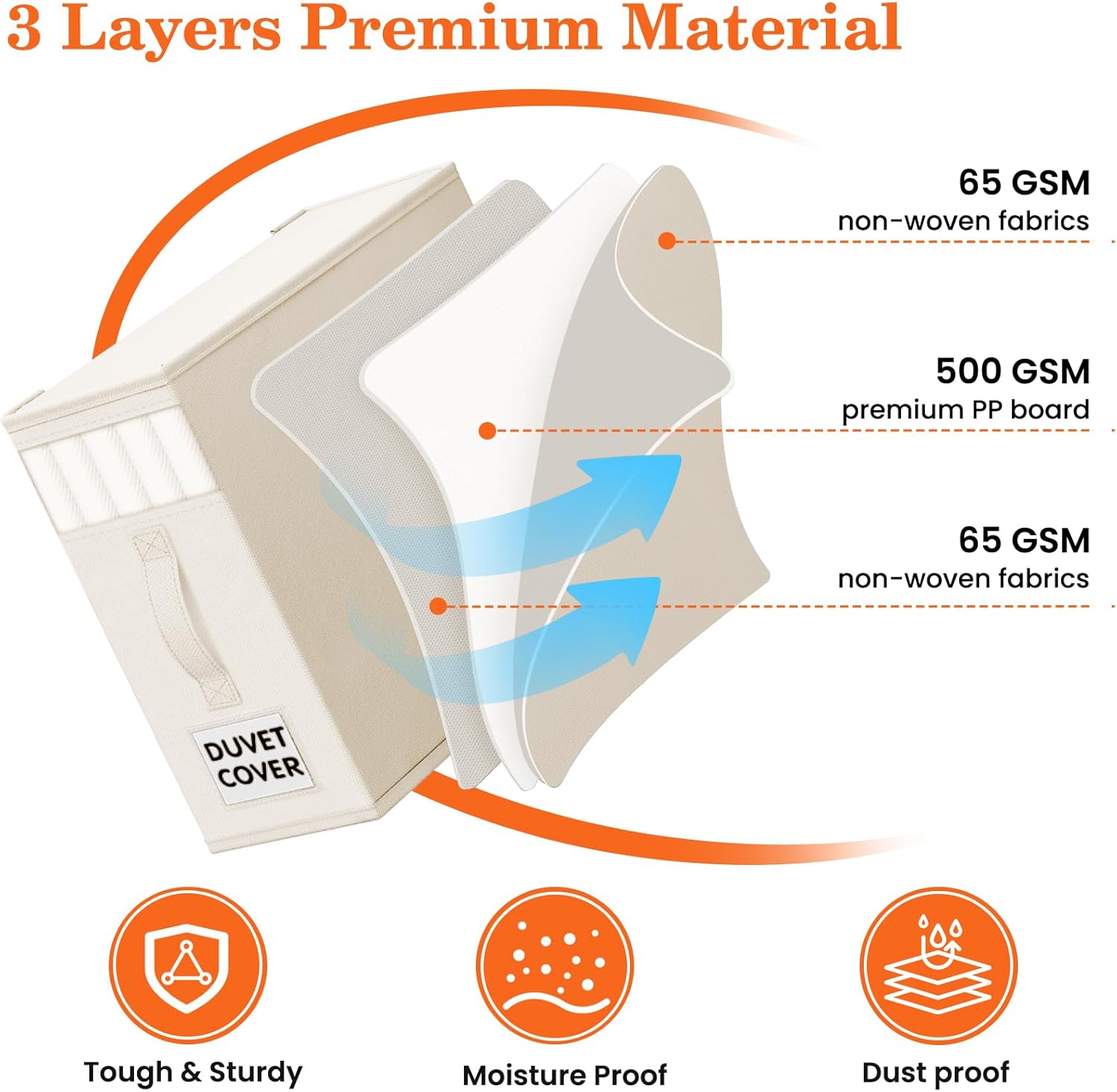 - Durable & Secure: Built with 3 layers of premium material, strong self-fastening straps, and a reinforced handle, WOWBOX sheet storage organizers withstand daily use. The sturdy structure and smooth zipper ensure long-lasting reliability, making these closet organizers ideal for protecting bedding, seasonal clothes, or tablecloths