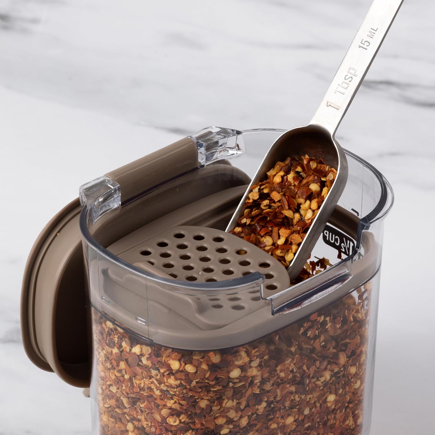 - Accessory-Rich for Smart Storage – Comes with built-in magnetic tools like a leveling bar, measuring/dusting spoon, and removable terra cotta tamper to keep brown sugar soft. All accessories store neatly under each lid for space-saving efficiency.