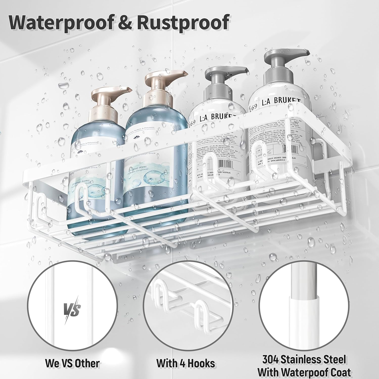 - Durable Stainless Steel: Liuoud shower caddy made of stainless steel with high heat paint process which is waterproof, rustproof and durable. The hollow design makes it dry faster. Even in a humid bathroom environment, it can be used for long time