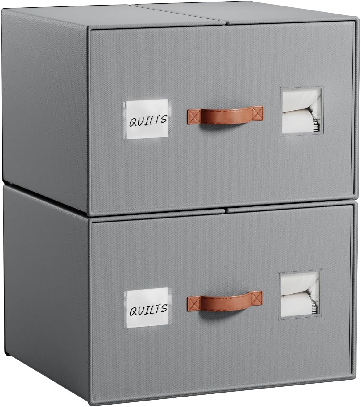 2 Pack comforter Storage Organizers, king&queen size blanket Organizers with Reinforced Walls ,Foldable 21"x18"x11" Space-Saving Design for Bedding Storage & sheet storage