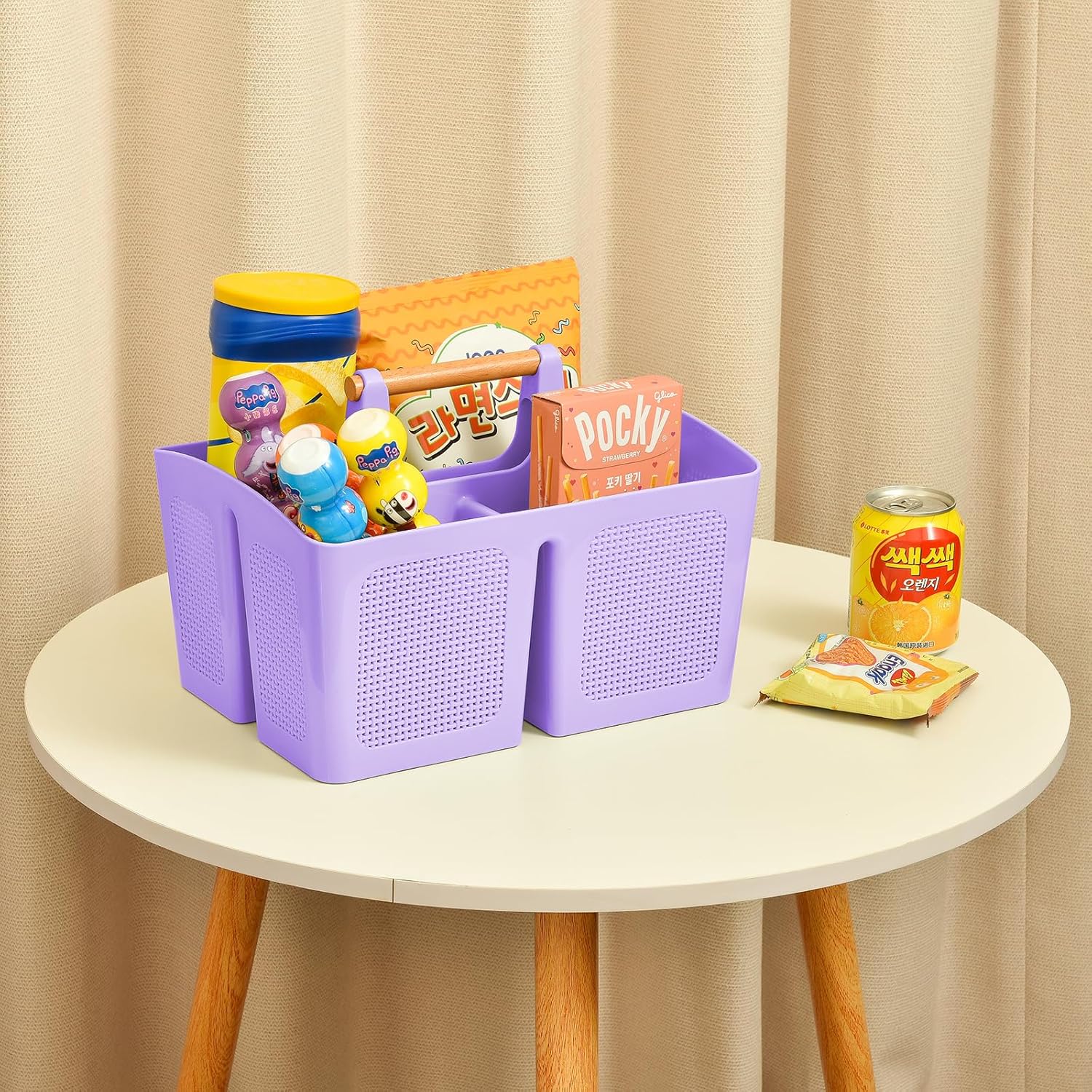 ALINK Portable Shower Caddy Basket with Compartments, Plastic Divided Cleaning Caddy Organizer Storage Tote with Handle for Bathroom, College, Dorm Room Essentials - Purple