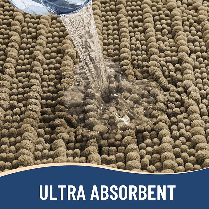 Arotive Luxury Chenille Bathroom Rug Mat, Extra Soft Thick Absorbent Shaggy Bath Rugs, Non-Slip Machine Wash Dry, Plush Bath Mats for Bathroom, Shower and Tub, 34x21, Camel
