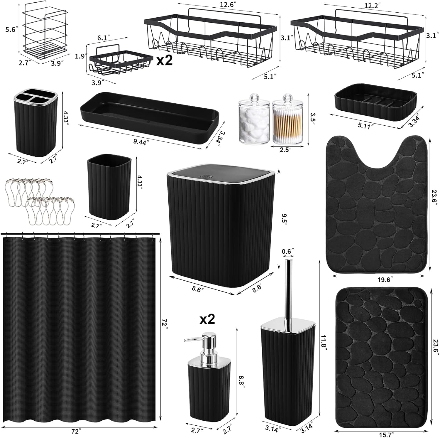 30PC Bathroom Accessories Set - Gorgeous Black Bathroom Set, Bathroom Accessory Set, Black Shower Curtain Set with Bathroom Storage