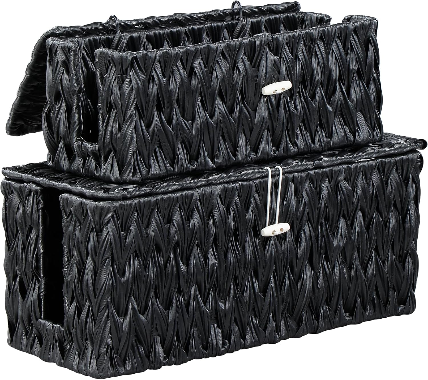 Black Cable Management Box,2 Pack Large & Medium Rattan Cable Organizer Box for Power Strip,2 Open Slots Cords Hider Box for TV Wires, Computer, Router, USB Hub and Under Desk Power Strip