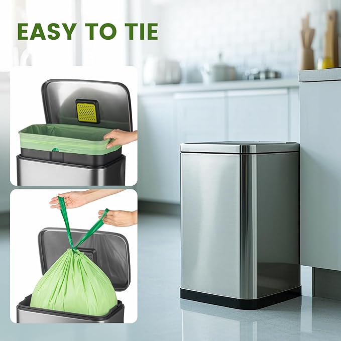 SUPERBIO 8 Gallon Compostable Drawstring Kitchen Waste Bags,30.3 Liter, 30 Count, 1 Mil,Heavy Duty Food Waste Bags, BPI, Seedling and OK compost INDUSTRIAL