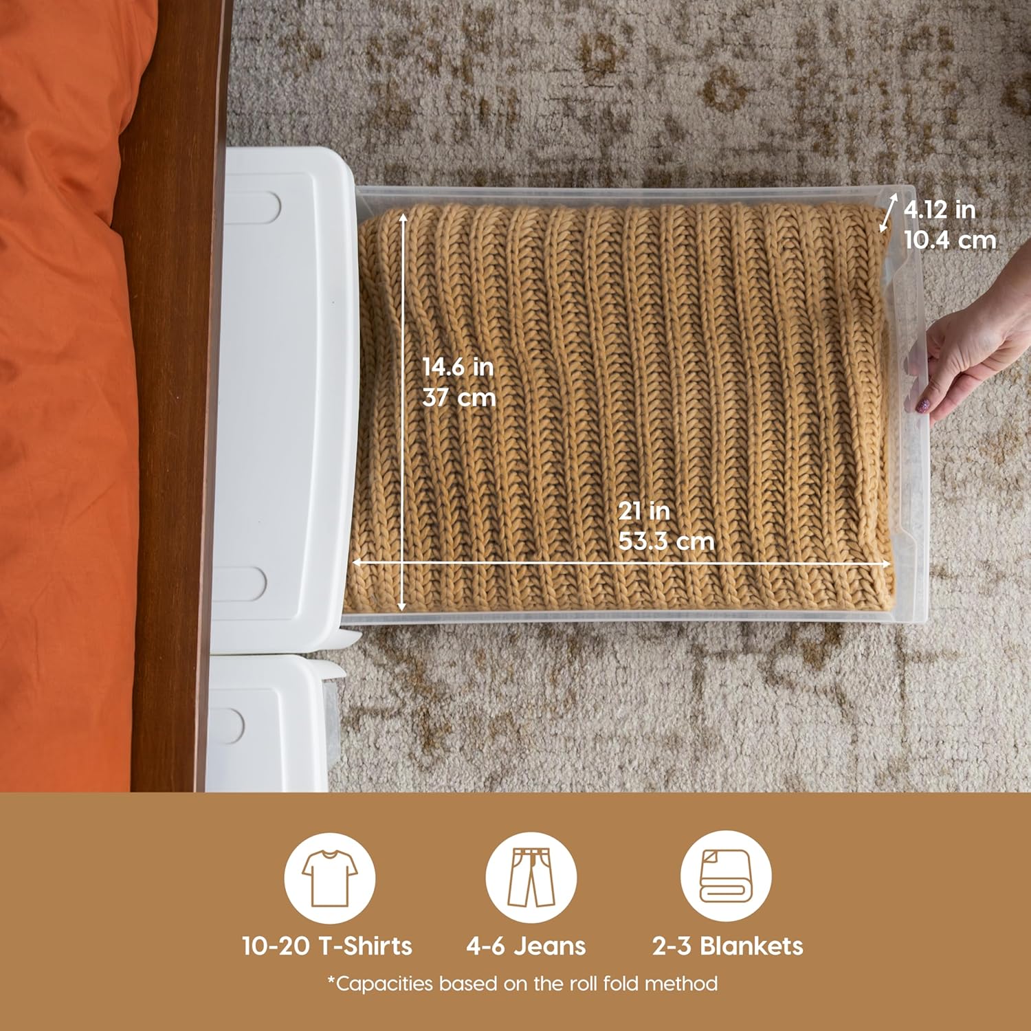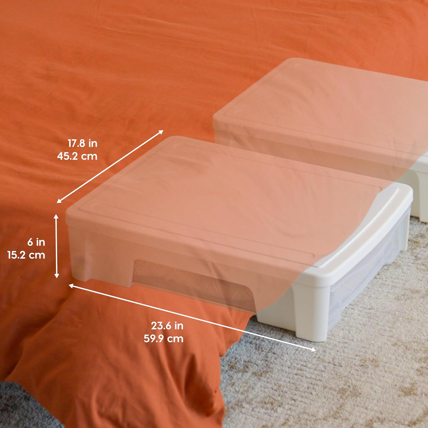 IRIS USA 22 Qt Under Bed Storage, Stackable Organizer Bin Plastic Container with Sliding Drawer, 2 Pack, Multi-Purpose for Clothes, Shoes, Bedding, White