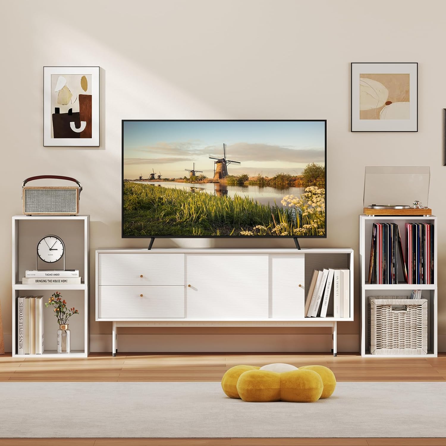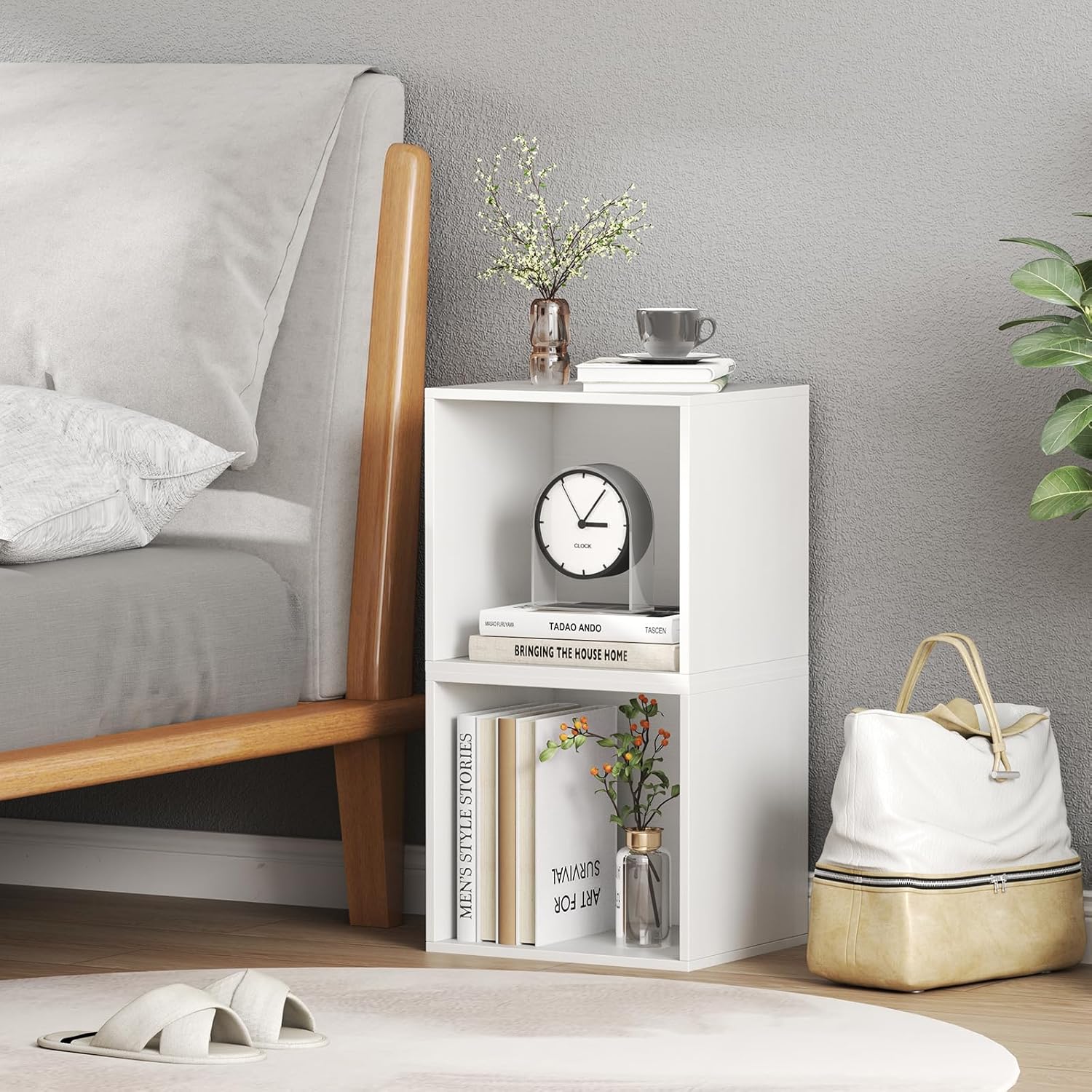 Giantex 2-Cube Bookcase, Stackable White Cube Storage Organizer w/Open Bookshelf, Wooden Display Shelving Unit for Small Space, DIY Modular Cubby Storage System for Home, Study, Living Room