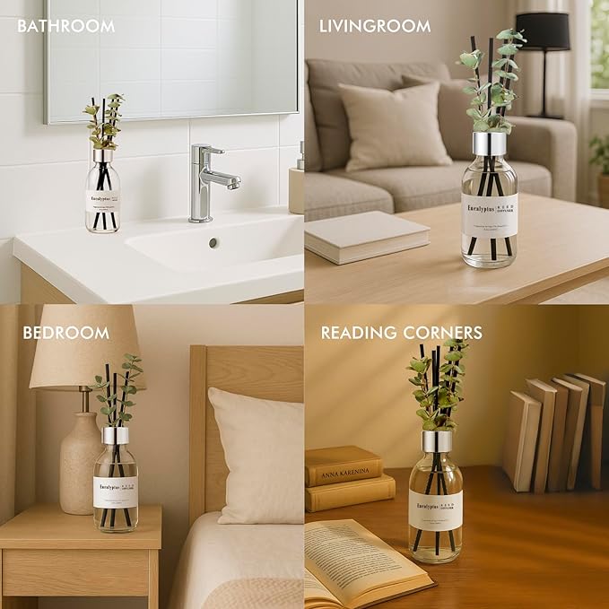 - Long Lasting Scent: Natural rattan reeds ensure that the scent is released slowly and consistently over time, so you can enjoy the fresh eucalyptus scent for weeks or even months, depending on your environment