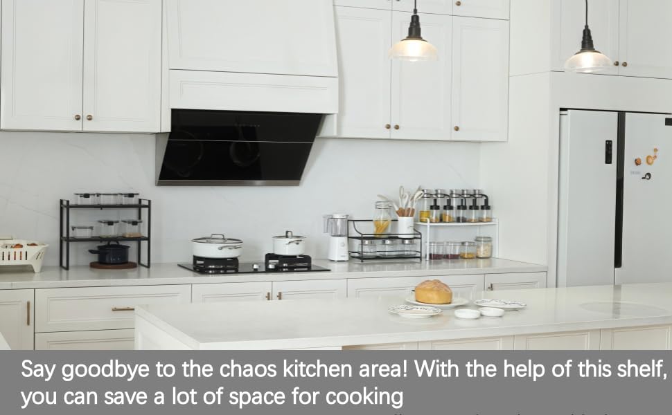 - [Multifunctional Storage ]:Say goodbye to the chaos kitchen area! With the help of this shelf, you can save a lot of space for cooking, make your kitchen clean and neat;They can also be placed inside a cabinet closets, pantry cupboards, bathroom countertop