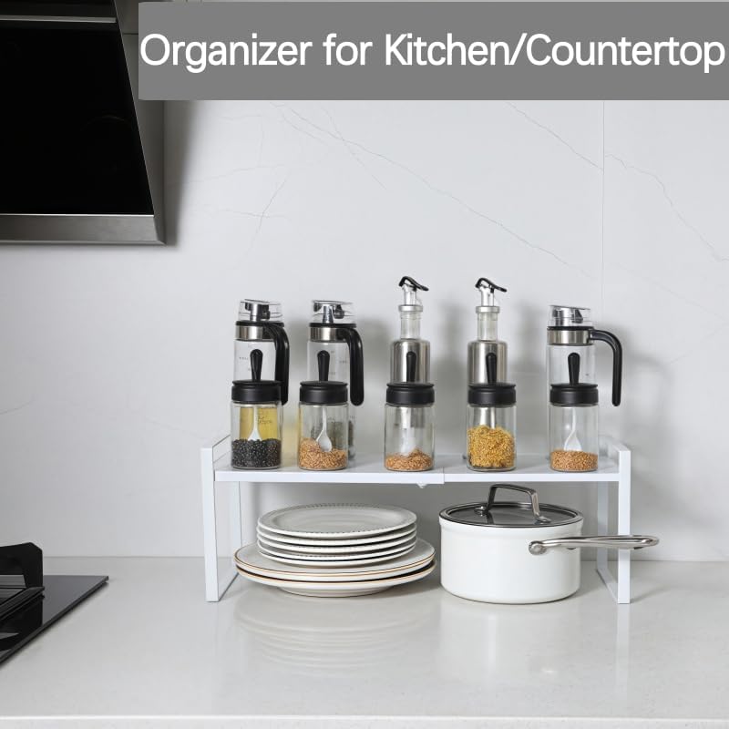 Expandable Cabinet Shelf Organizer Riser for Kitchen Pantry Cupboard Under Sink Countertop (white, 8.2’’D * 12.2-21.6’’W * 7.7’’H)