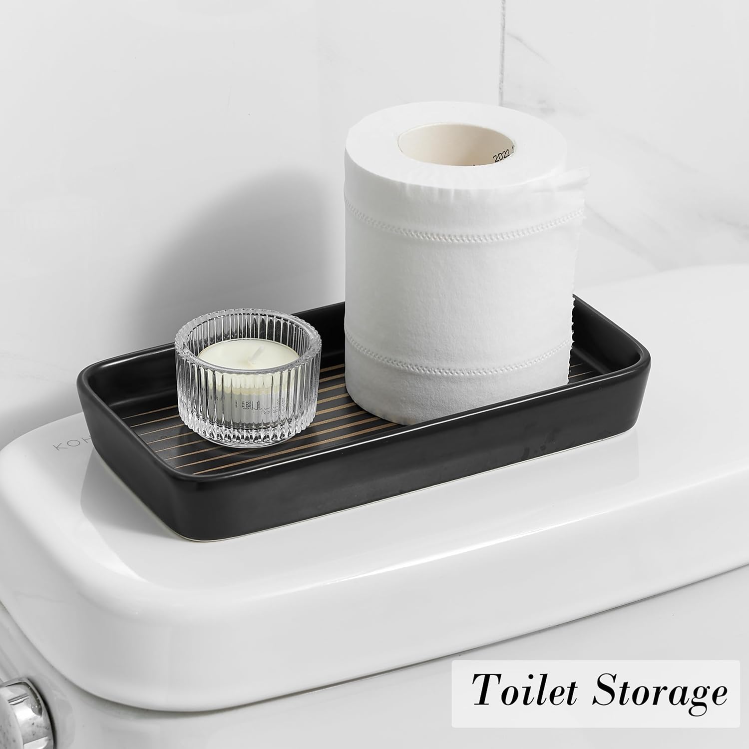 - Use It Anywhere – Choose the endlessly useful and aesthetically pleasing tray that works anywhere. The tray set is perfect as a bathroom tray, vanity tray or soap dispenser tray. The trays are made of Premium Ceramic. They’re waterproof, slip-resistant, heat resistant to 425F, and dishwasher safe.