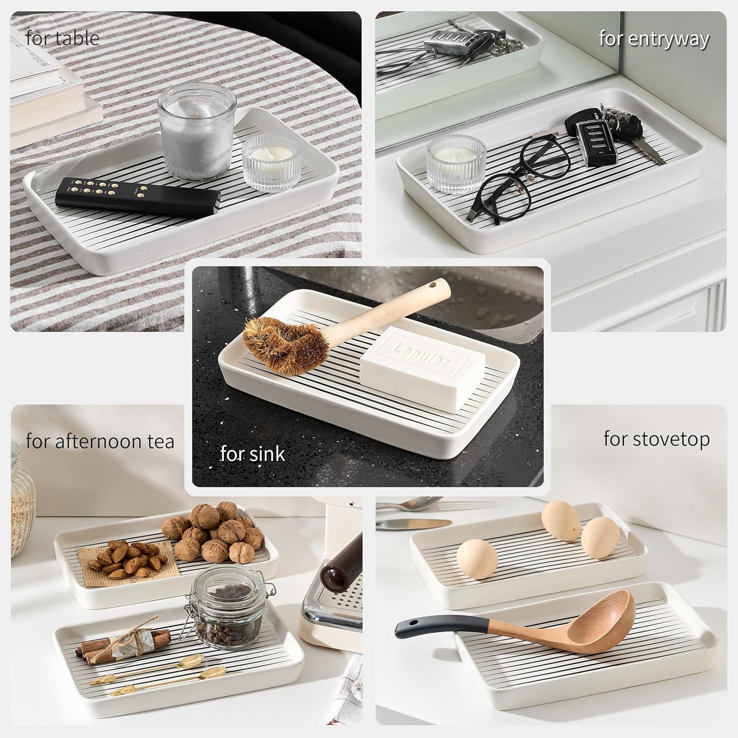 - Large striped Tray Set-- The striped countertop tray set is the perfect kitchen sink tray for soap bottles, vanity tray, bathroom sink organizer. It’s the perfect soap bottles tray for bathroom.