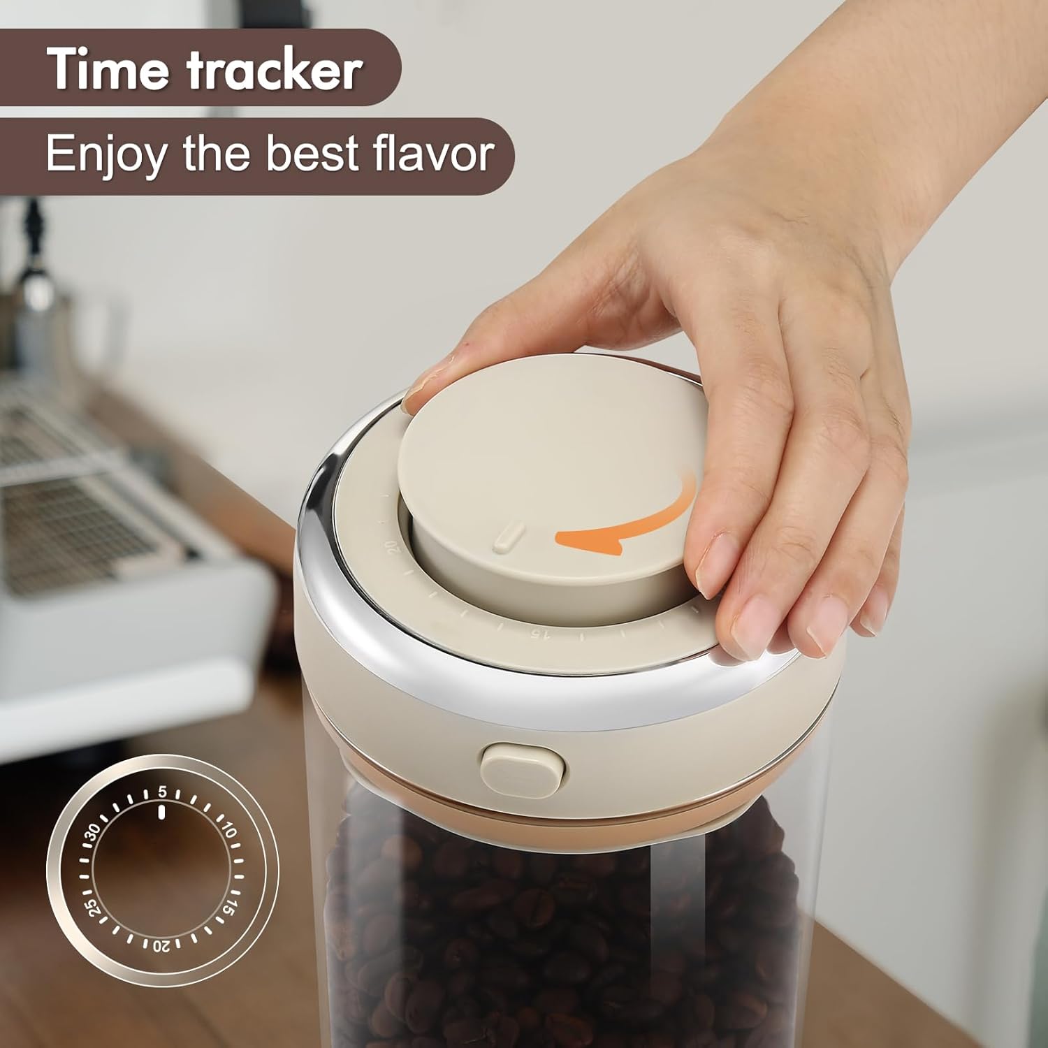 - FRESHNESS TRACKER: Coffee beans are normally at their best flavor within 14 days. The date tracker on the lid allows you to easily record and manage the storage time of coffee beans. Use this coffee bean jar to track the storage of coffee beans and ensure you can enjoy the best flavor every time