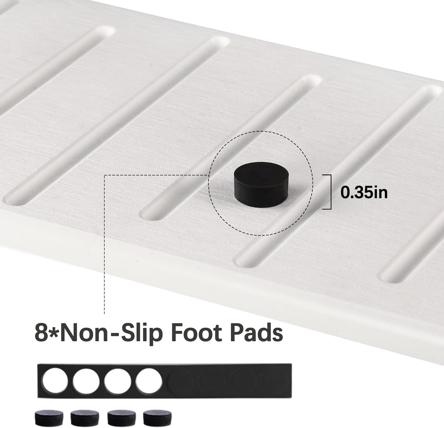 - ✅ Anti-Slip & Durable: Includes 8 silicone feet for stability on wet surfaces. Compact 22x11x1.3cm/8.66x 4.33x0.51inch size fits sinks, counters, and shelves.