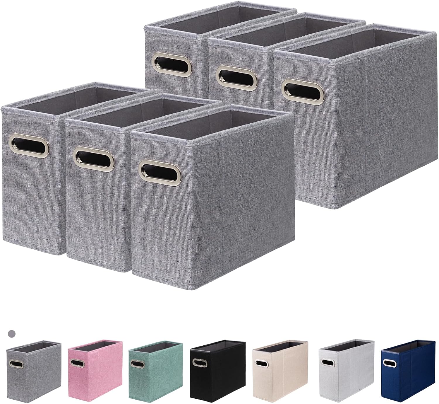 6 Packs Letter Size File Organizer, File Folders Organizer, Fabric Storage Box, Collapsible Paper Organizer with Metal Handle, Smooth PVC Rails, Only Box (Gray)