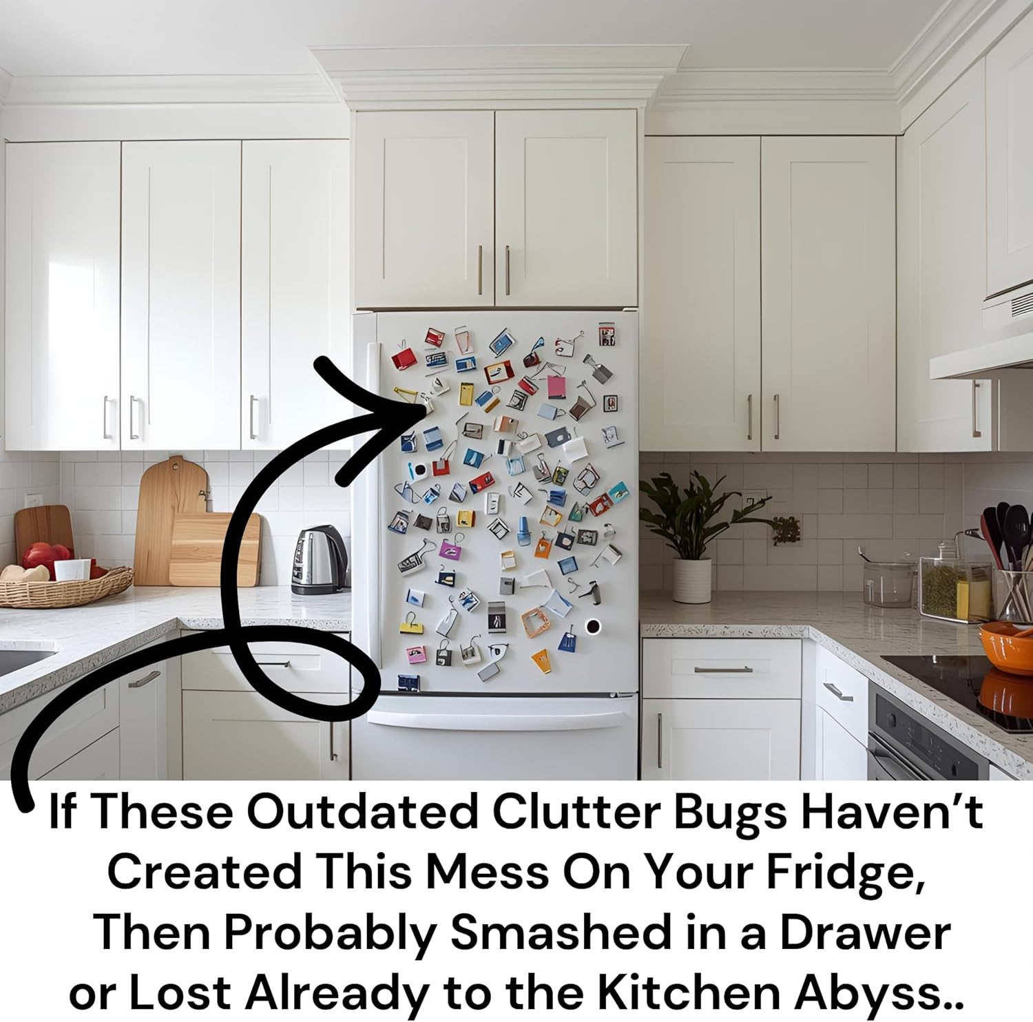 - SMART ORGANIZATION STARTS HERE : Those bulky chip clips have caused headaches for almost 50 years now. Smashed drawers, always lost, or all over the front of your fridge like confetti. We developed a one-size-fits-all, band and storage mount system to keep your snacks fresh, cabinets/pantries organized, while also providing discreet and convenient storage solutions. Finally eliminating those age old kitchen problems all-together. No more clutter, searching endlessly for a fix, or giant plastics in the way. Practical, Effective, Elevated.