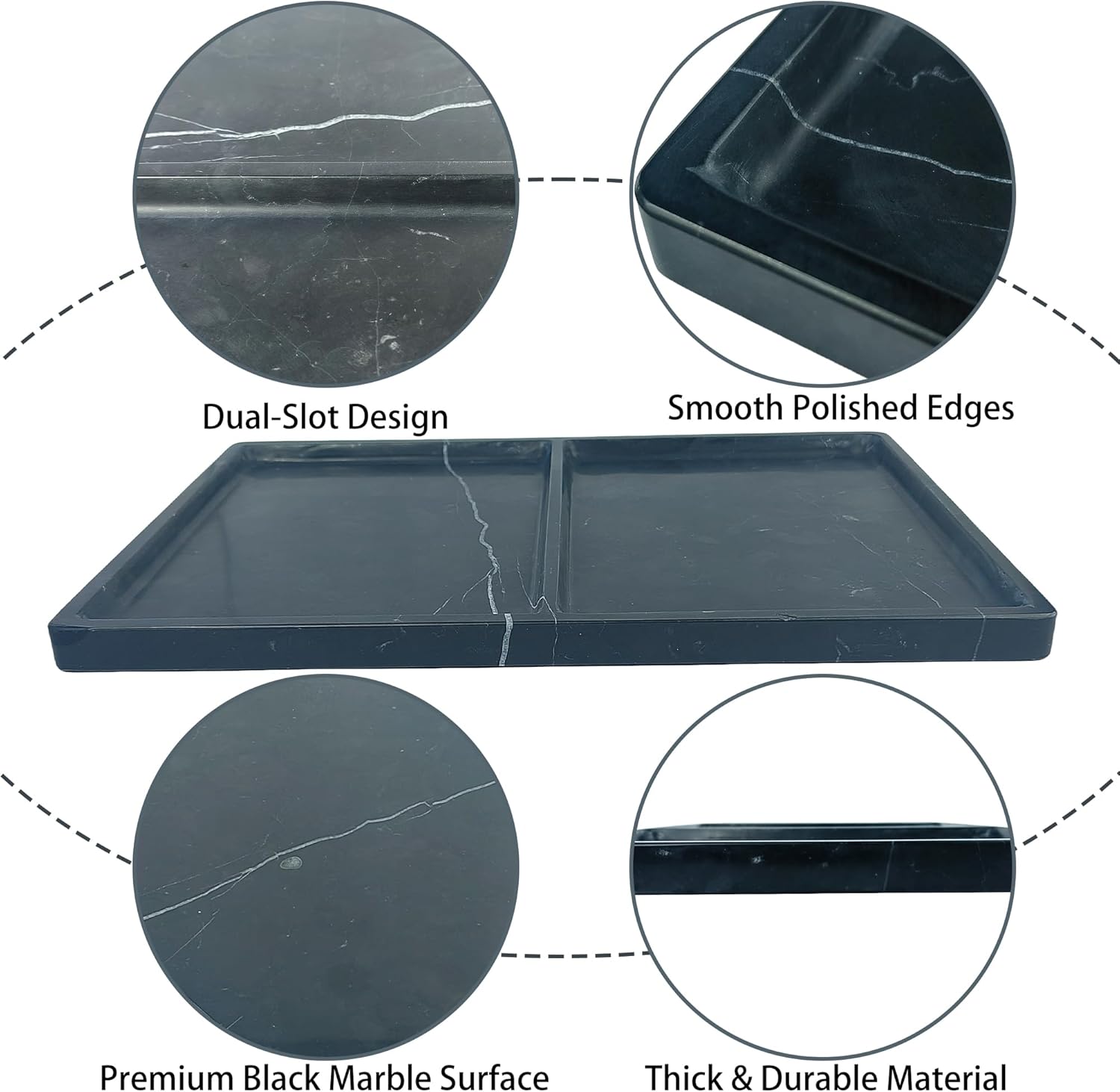- VERSATILE STORAGE ORGANIZER: This multi-functional marble tray features two compartments, ideal for organizing jewelry, keys, cosmetics, and soap. Perfect for your bathroom, office, or bedroom.