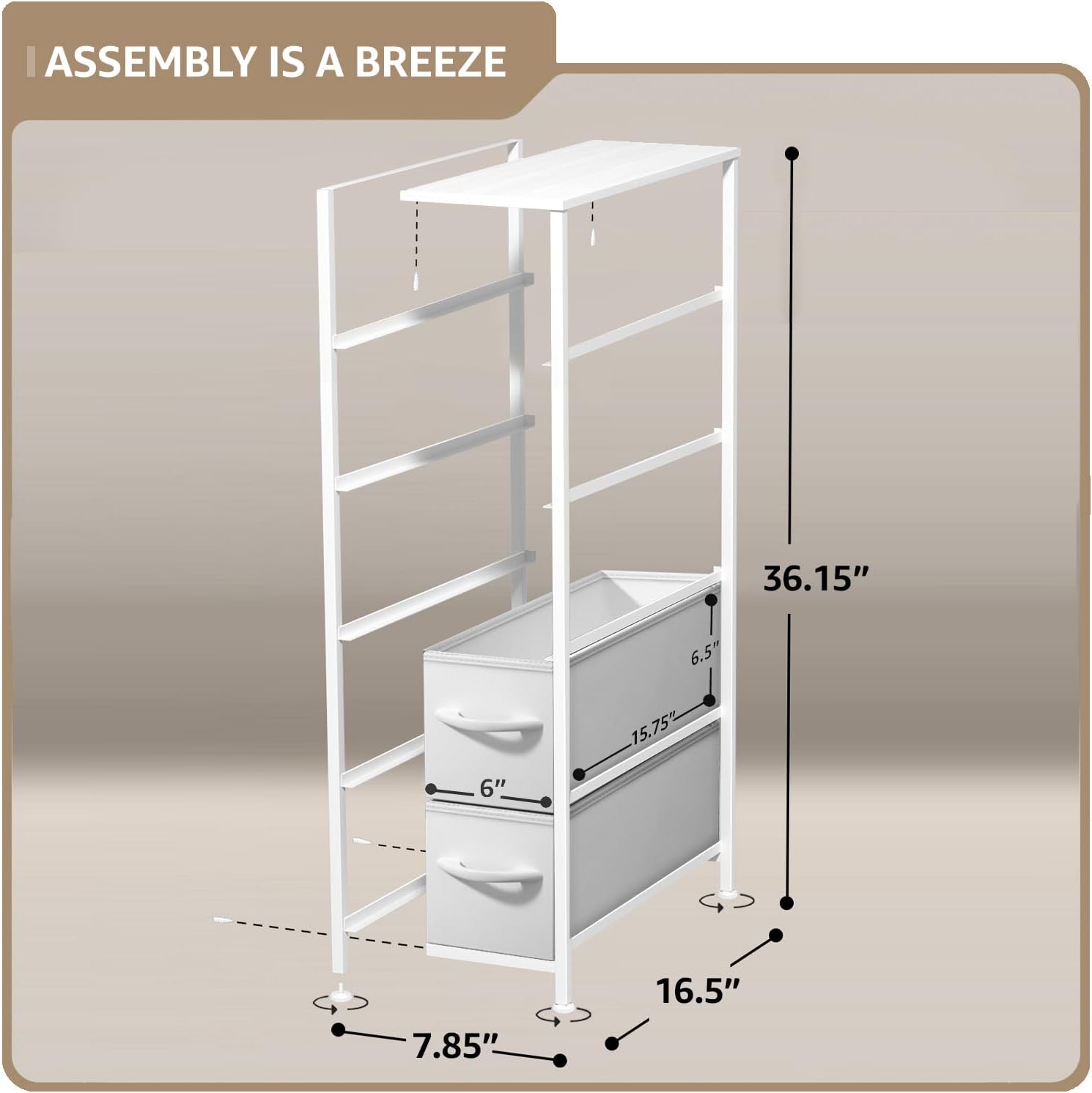 - Design Details: Put your narrow storage shelving unit together in minutes so you can organize your home right away. Assembly hardware, instructions, and mounting hardware are included. Entire dresser measures. 7.8 x 16.5 x 36 in Drawer dimensions: 6.02 x 15.75 x 6.5 in.