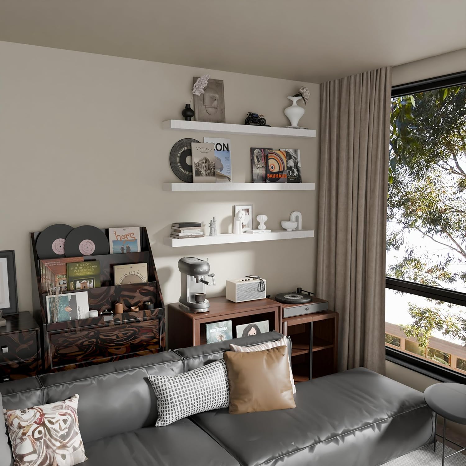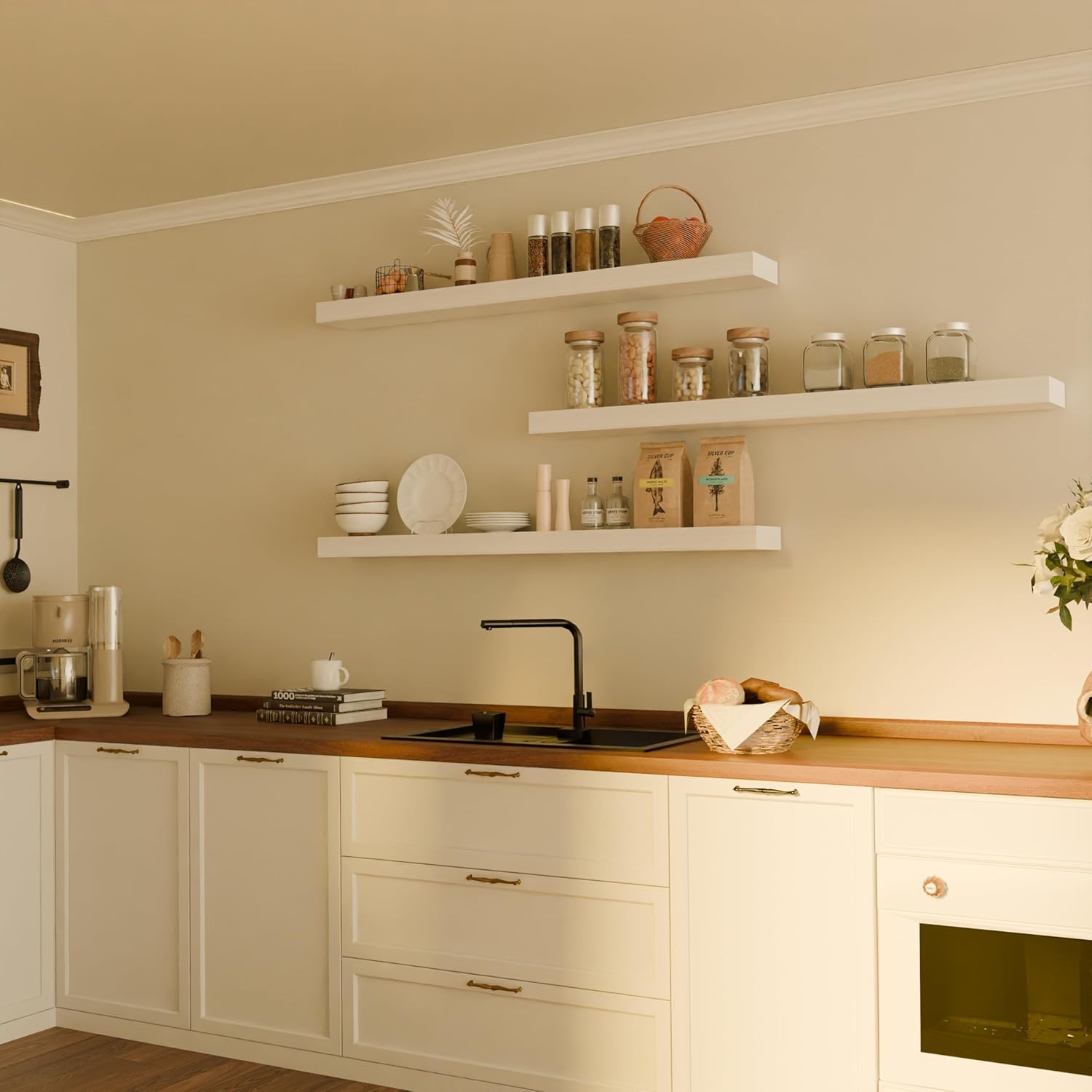 Floating Shelves for Wall, 48 Inch Extra Long White Wall Shelves, Set of 3, Hanging Invisible Brackets Floating Shelves for Living Room,Bedroom,and Kitchen