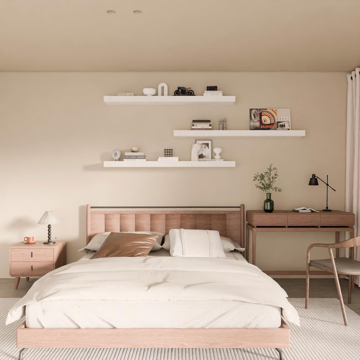 - 【Multifunctional Decorative Shelves】Upgrade your space with our shelves for room wall, perfect as wall mount shelf and wall shelves for bedroom. These versatile shelves serve multiple functions, ideal for displaying books, plants, photos, and more, adding both style and utility to your home. The sleek design ensures they fit seamlessly into any room's decor, from living areas to offices