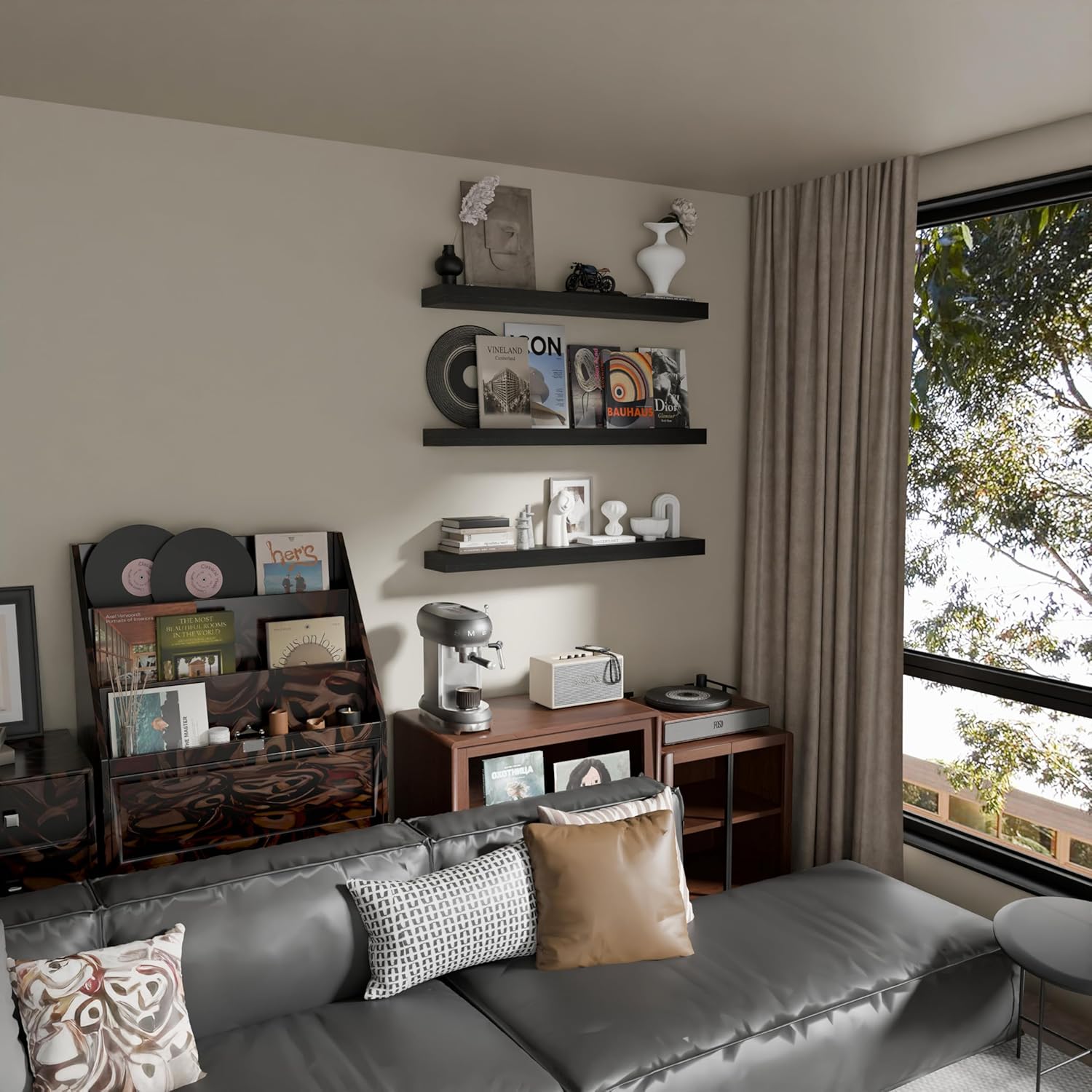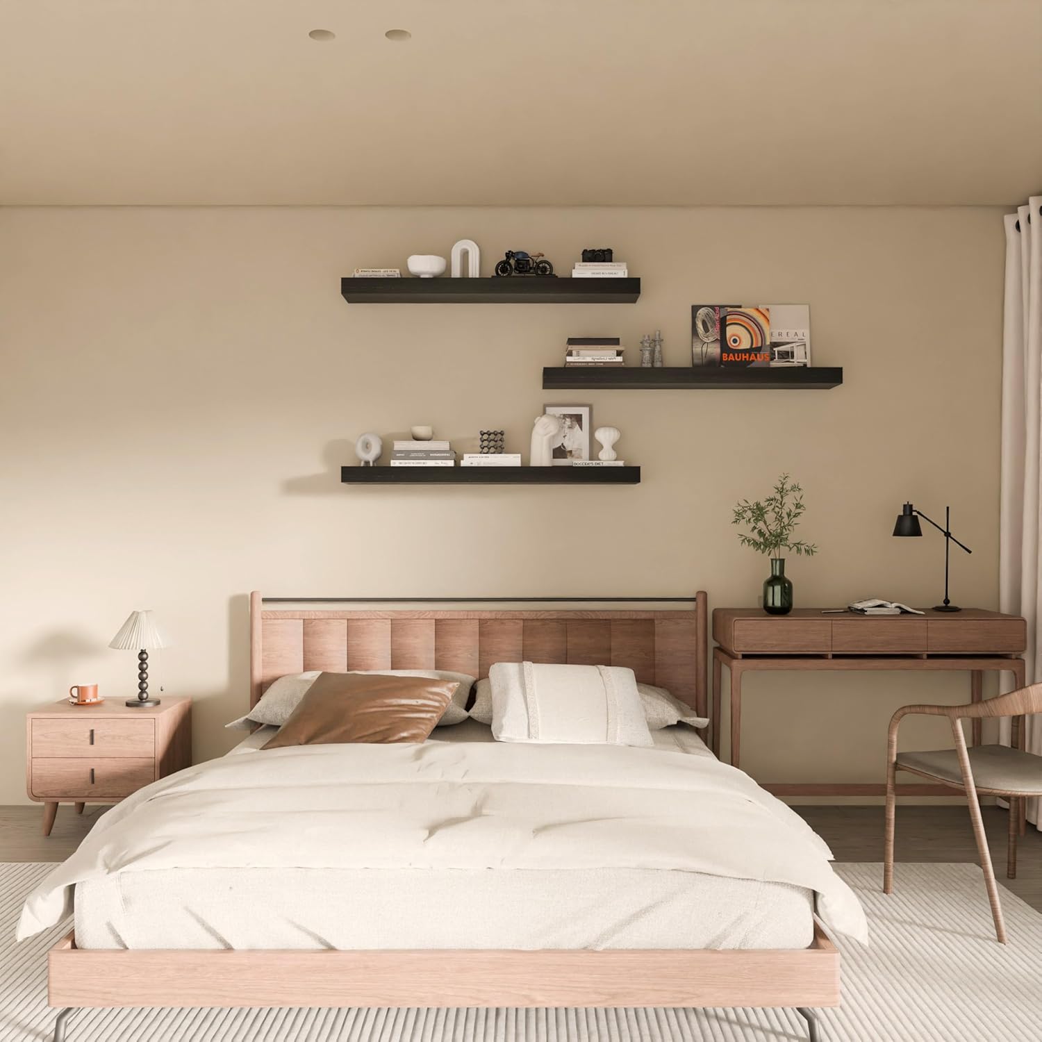 - 【Multifunctional Decorative Shelves】Upgrade your space with our shelves for room wall, perfect as wall mount shelf and wall shelves for bedroom. These versatile shelves serve multiple functions, ideal for displaying books, plants, photos, and more, adding both style and utility to your home. The sleek design ensures they fit seamlessly into any room's decor, from living areas to offices